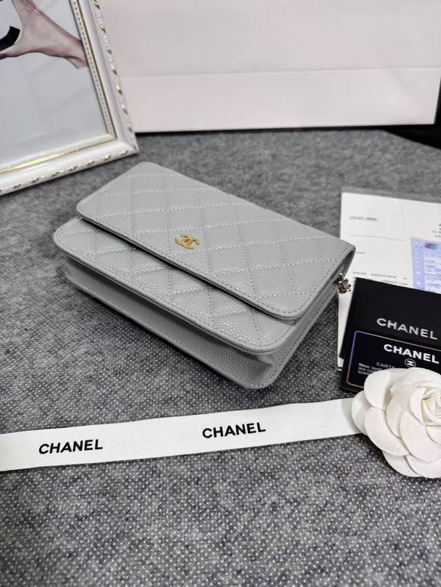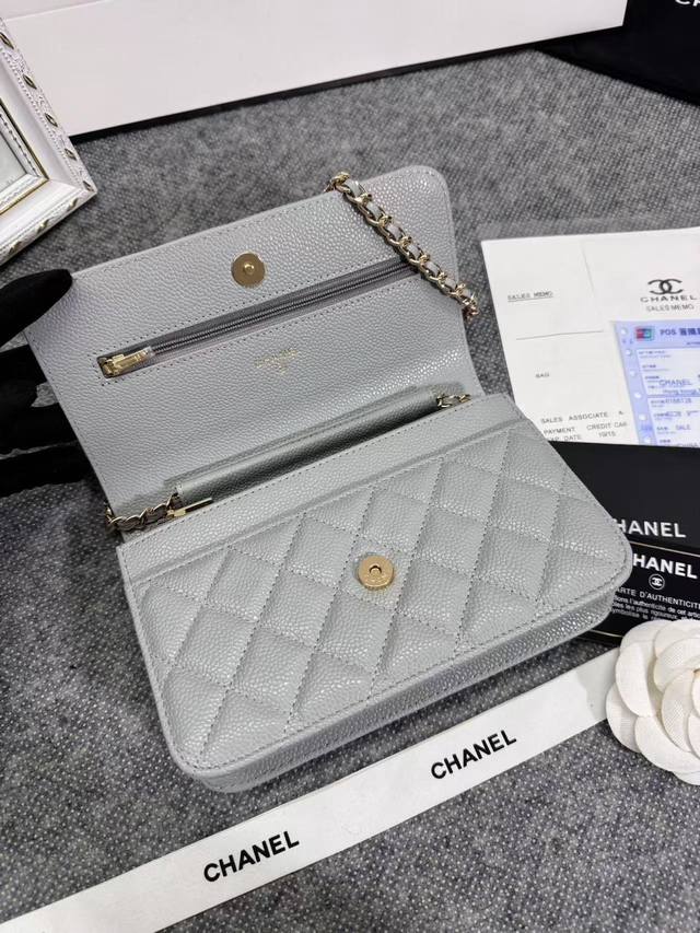 Upgraded Woc 0 Lucky Bag, imported original ball pattern, classic diamond quilting and leather-threaded metal chain design. The appearance is the same as the previous classic Woc, the difference being that the internal zipper is now metal and the snap closure has been replaced with a more convenient magnetic clasp. Size: 19cm. Clearance price DDD
