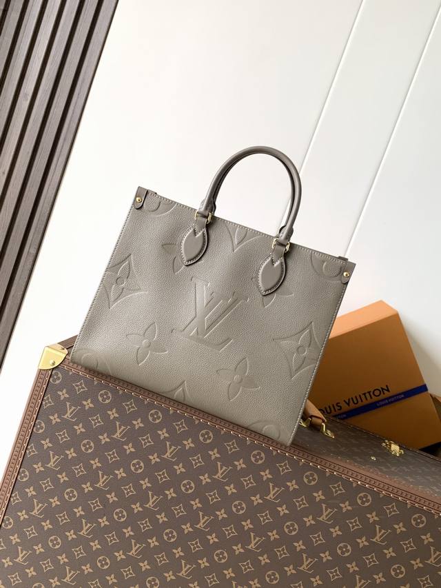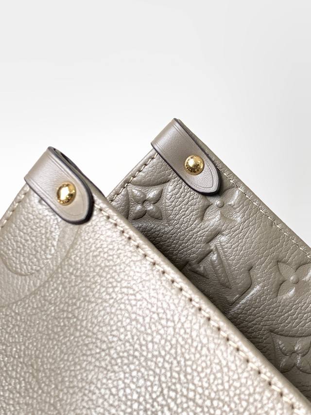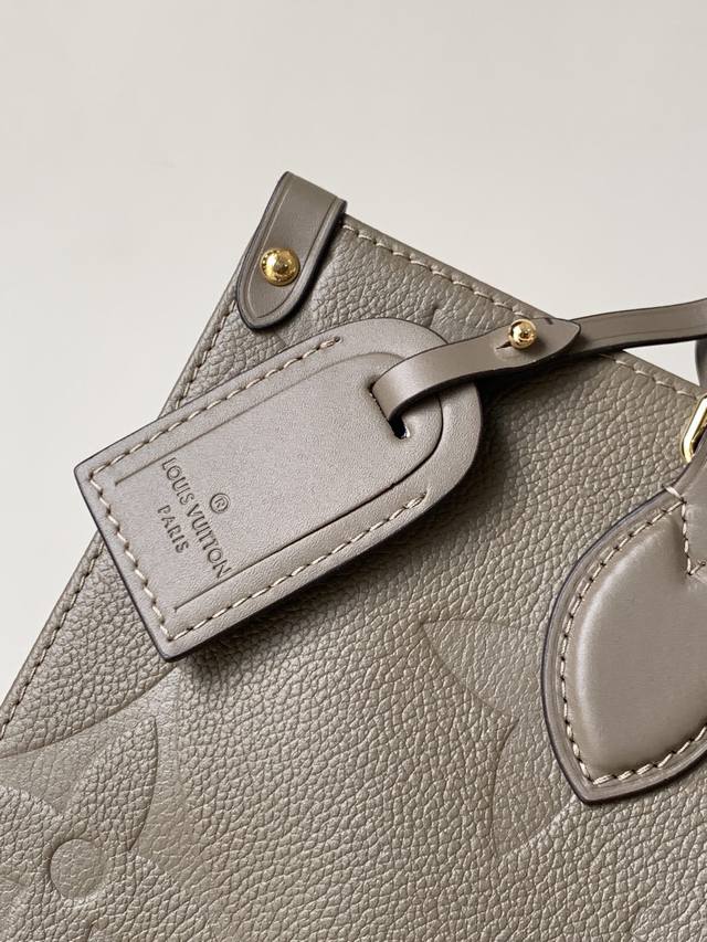 . This premium, original Onthego medium handbag is crafted from Monogram Empreinte leather, with a grainy texture accentuating the Monogram embossing, adding a touch of elegance to the angular shape. The ample microfiber interior accommodates a laptop, while the rolled leather handles and long shoulder strap allow for versatile carrying options. 35.0 x 27.0 x 14.0 cm (Length x Height x Width)