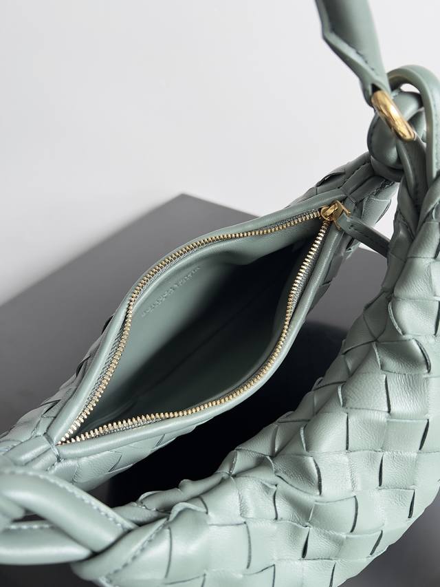Will the Gemelli handbag featured in Shu Qi's advertisement be the next big trend? It's a key piece this season. Gemelli means twins; the two crescent-shaped bags, one large and one small, are connected by leather rope, resembling two sisters. It can be carried over one shoulder or detached to become two separate handbags of different sizes. Shu Qi and the runway models both hold the smaller one directly, its curve naturally resembling a handle. In fact, the Intreccio woven handle feels softer and more comfortable than a leather handle. Style Number: 776764 Size: 24.5*7*19cm Color: Aloe Green