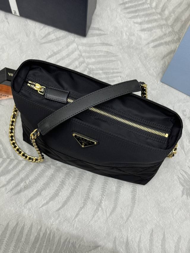 Pure Handmade Nylon Diamond Design Can Be Shoulder + Crossbody Imported Black Gold Chain Collocation Is Really The Eternal Plot Of Vintage Simple Atmosphere Large Capacity Space Is Particularly Trendy And Versatile And Fashionable Whether Casual Or Formal All Steady Temperament Hurry To Start Love This Second-Hand Hobo Bag