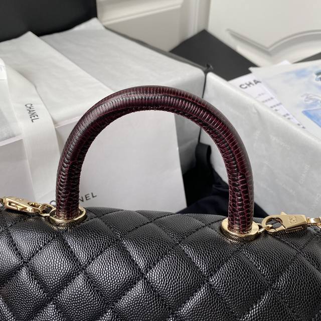 Black With Jujube Red Handle, New For 2021, 92990, Lining With Lambskin Flap Handbag, The Hottest Mini Size Of The Season, Cocohandle Classic, Almost A King Bomb, Now Launched, Even Softer And Cuter, Wrist Jujube Red Lizard Pattern Cowhide, Light Gold Buckle 23Cm