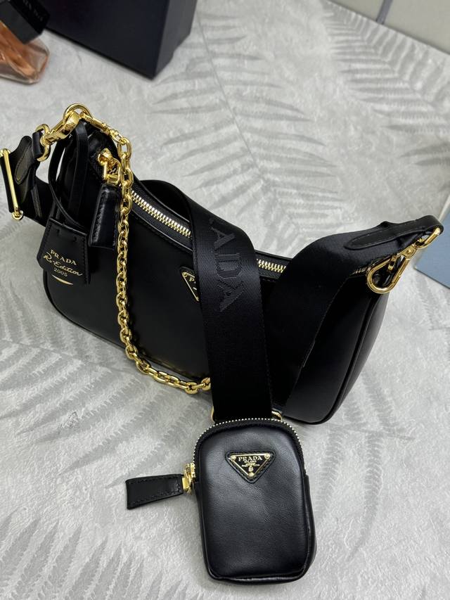 Comes With A Full Set Of Matching Counter Packaging, Exclusive Customization, New Plain Three-In-One 1Bh204 Calfskin, Gold Hardware, Crossbody Hand-Held Underarm Bag. The All-Leather Hobo, Which Is Popular In The Fashion Circle And Is Popular Among Internet Celebrities, Has A New Model. The Design Of This All-Leather Hobo Bag Is Amazing. It Can Be Used As A Waist Bag, Crossbody Or Single-Body Bag. The Handle Is Replaced With A Chain To Make It An Underarm Bag, Which Adds A Touch Of Sexiness. It Is Also Equipped With A Long Shoulder Strap. What I Like Most Is That There Is A Small Ornament Hanging On The Shoulder Strap. The Small Bag Can Also Be Hung On Other Bags And Trousers As Accessories To Match With Daily Clothes. It Is No Problem To Match It With Various Clothes. Hurry Up And Get It, It Is So Beautiful