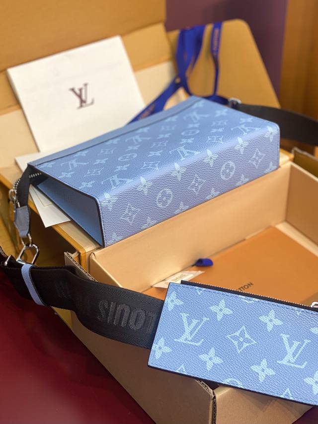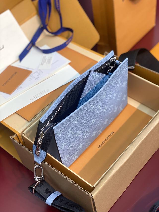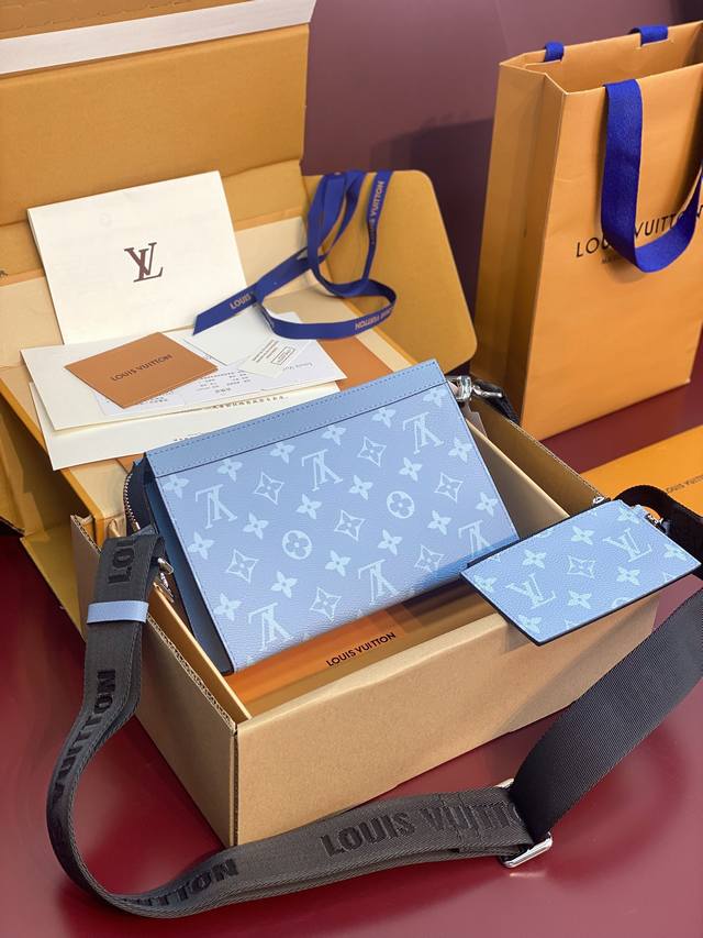 Factory Price P Upgraded Version M14114 Sky Blue! Counter Synchronized Packaging! Alpha Wearable Wallet Combines Monogram Eclipse Canvas And Leather Trim, Can Accommodate Mobile Phones And Small Wallets. Wide Mouth Design And Side Accordion Structure For Easy Access, Adjustable Shoulder Straps For A Variety Of Carrying Methods.