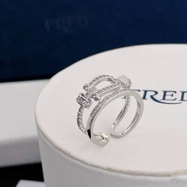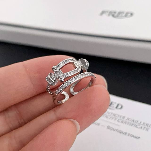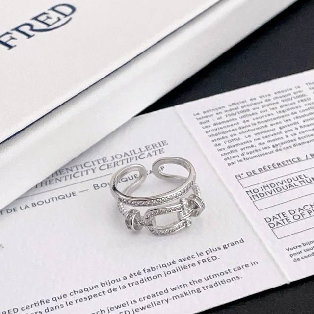 Hot Fred Full Diamond Open Ring, Classic And Versatile, A Must-Have Item For Internet Celebrities And Fashionistas, Stylish And Exquisite, 1:1 Version Customization, Thickened Electroplating 18K Technology.