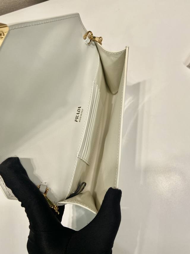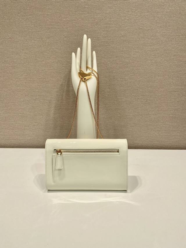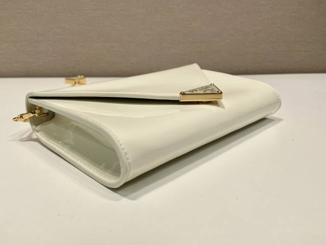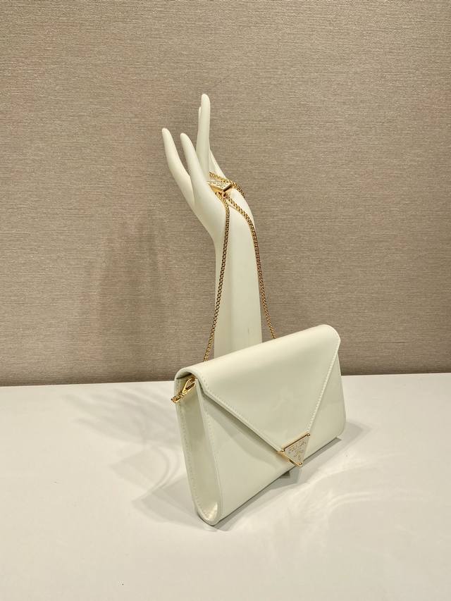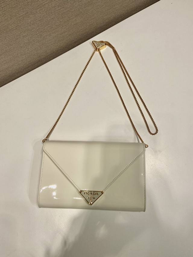 The Glossy Finish Of The Lacquered Leather Accentuates The Elegant Silhouette Of This Mini Clutch, Infusing It With A Modern Vibe.This Handbag Features A Removable Chain Shoulder Strap And A Soft Lambskin Lining With Card Slots. The Magnetic Clasp Features The Iconic Triangular Logo, Showcasing Classic Style And Recognizability. It Can Also Be Used As A Handbag, Shoulder Bag, Or Crossbody Bag. Versatile And Functional For Various Occasions. Another Must-Have Item!