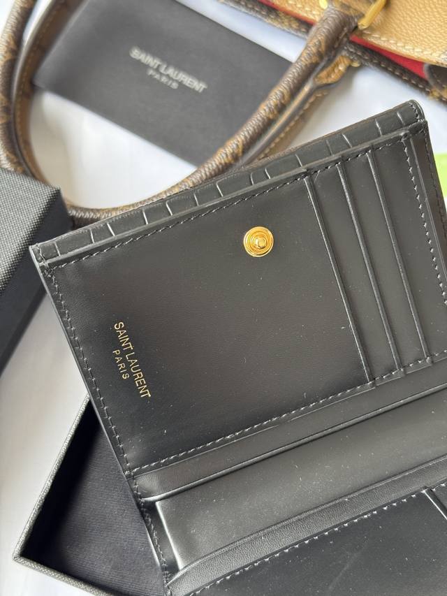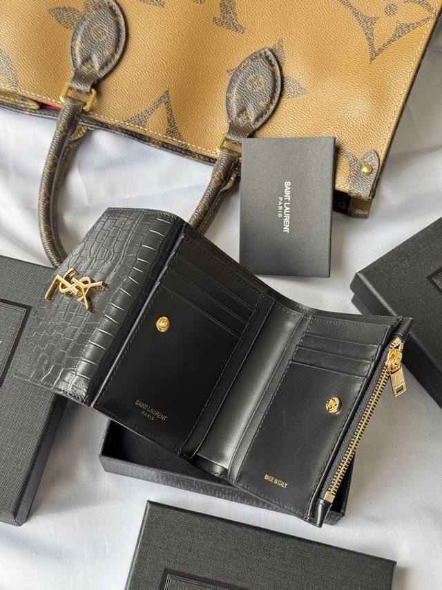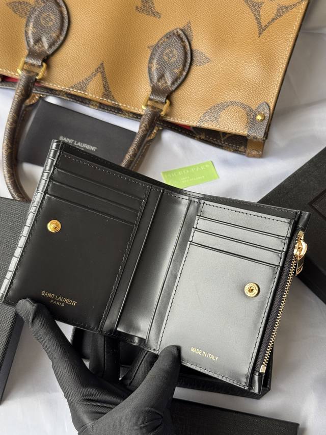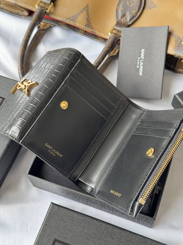 2025 New Slp Tri-Fold Wallet In Crocodile Leather With Black Gold Buckle, Genuine Cowhide Leather, Split Back Pocket, Six Card Slots, One Zipper Pocket, Andfour Bill Compartments.