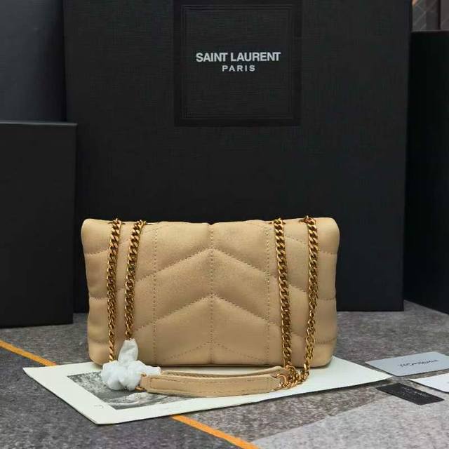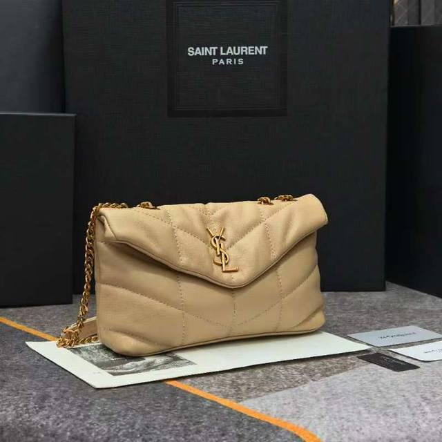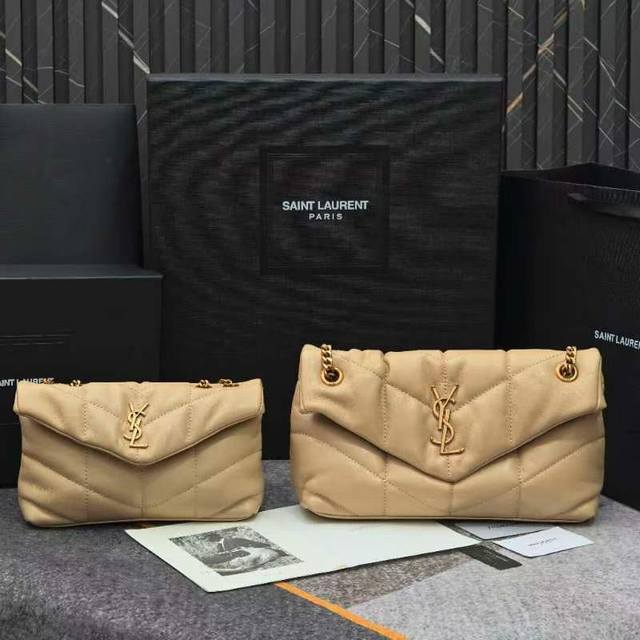 Small 8821-Upgraded Top-Grain Lambskin Version Loulou Puffer Quilted Lambskin Bag, Made From 100% Lambskin, With A Soft And Delicate Texture, Offering A Sensation As If Holding A Cloud; The Classic Y-Shaped Logo, Chain, And Hardware Details Are Crafted From Silver-Toned Brushed Metal, Featuring A Matte Finish With A Unique Texture,The Small Size Is Exceptionally Lightweight And Practical, Making It Perfect For Summer Use.