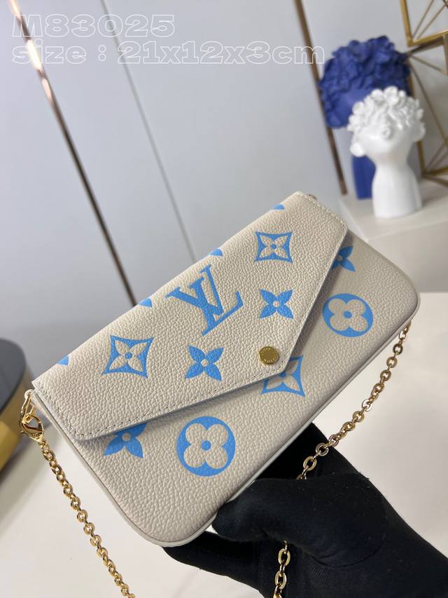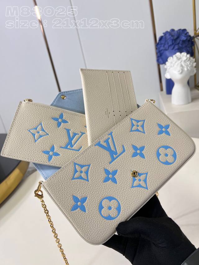 Top-Tier Authentic Single Piece, Exclusive Real-Life Photos. M83025 Blue. This Pochette F