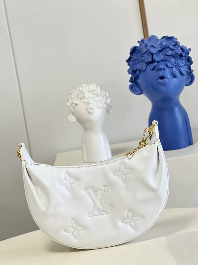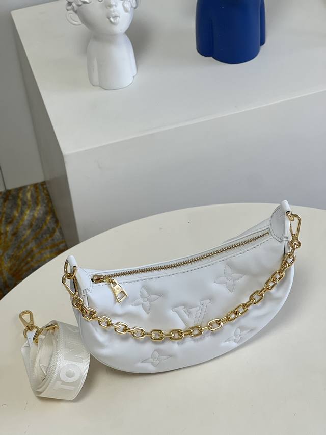 Top-Tier Original Factory M59959 White This Over The Moon Moon Handbag Features A Supple Quilted Calf Leather Construction With A Flexible Silhouette, Enhanced By Monogram Embroidery For A Touch Of Elegance.The Adjustable Shoulder Strap And Chain Allow For Versatile Styling