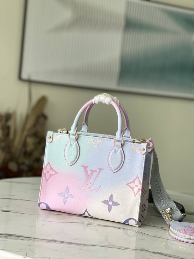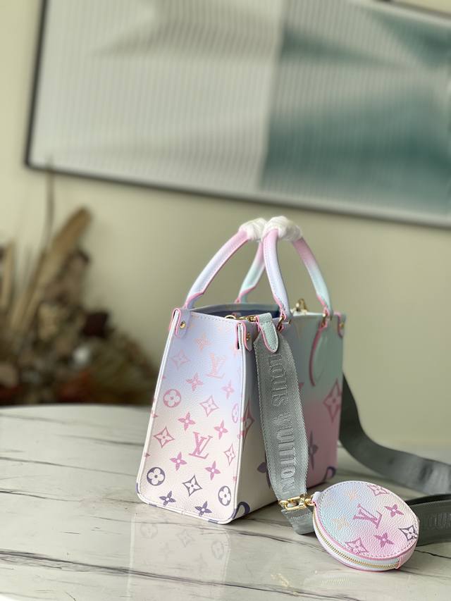 Top-Tier Original M59856 This Onthego Small Handbag Features A Monogram Canvas Rendered In A New Gradient Pink Color Palette, Adding A Fresh Touch To Spring Outfits.Compact Design Accommodates A Tablet, Wallet, And Phone. Removable Circular Coin Purse, Removable Jacquard Shoulder Strap, And Toron Handle Offer Versatile Styling Options. Dimensions: 25