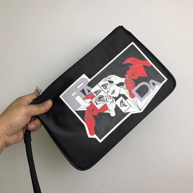 Hot stuff coming! A new hit! Original Prada men's handbag, made from imported parachute nylon waterproof fabric with imported cowhide leather, premium hardware, and a factory-made lining. Stylish, understated, luxurious, casual, lightweight, and practical. Size: 28-18-1