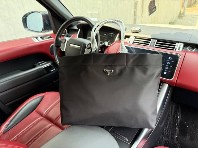 Latest high-end Prada briefcase, Prada tote bag with logo, adjustable shoulder strap, Saffiano leather messenger bag, shoulder and crossbody bag for men. Made of black nylon and Saffiano leather, this nylon crossbody bag features metal hardware and titanium zippers, Prada logo, and fabric lining. Two side buckles feature a triangular enamel logo on the front. This modern and stylish shoulder bag features a detachable pouch charm and spacious interior compartments, highlighting its functionality. It also features a smooth zipper and a dedicated interior with high-definition hardware logo. Dimensions: 40 x 32 x 15 cm, and comes with a gift box.
