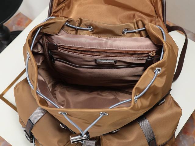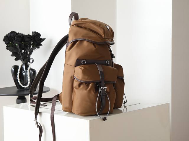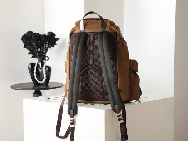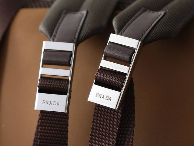 New cowhide leather patchwork backpack 2Vz117. This backpack blends sophistication and practicality, presenting a mixed silhouette with soft lines. The duality of design is reflected in the combination of lightweight and practical Re-Nylon recycled nylon and classic style. Spacious and versatile accessories are finished with signature details, showcasing Prada's craftsmanship. Large capacity, another timeless bestseller, grab yours now! Dimensions: Length 30cm x Height 46cm x Base 19cm