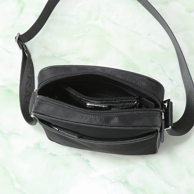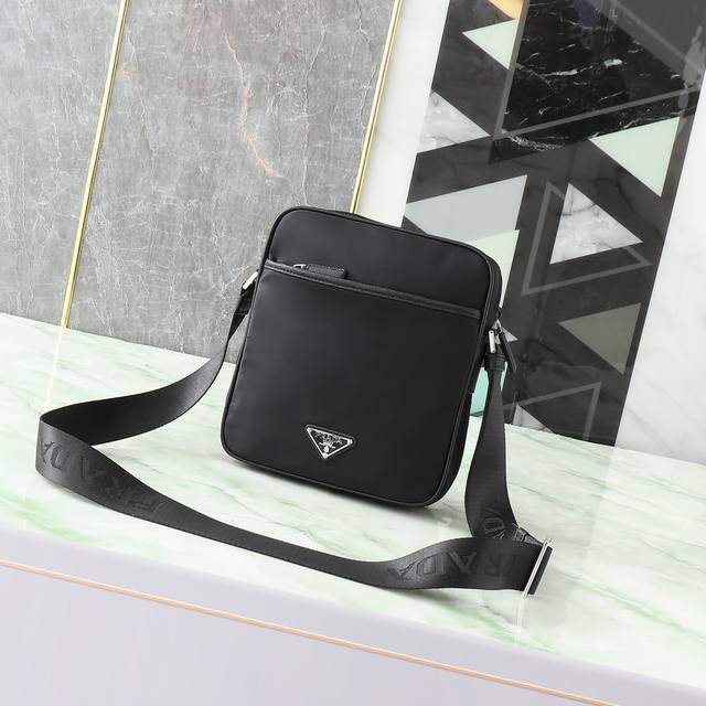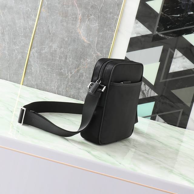 New men's bag from Pixnet, 2Vd143 black, original factory quality, nylon and Saffiano leather trim, adjustable nylon shoulder strap, polished steel hardware and black titanium zipper, multiple compartments, one zippered inner pocket and two zippered outer pockets, a must-have for men, 24cm (L) x 27cm (H) x 7cm (W), 165cm factory quality.