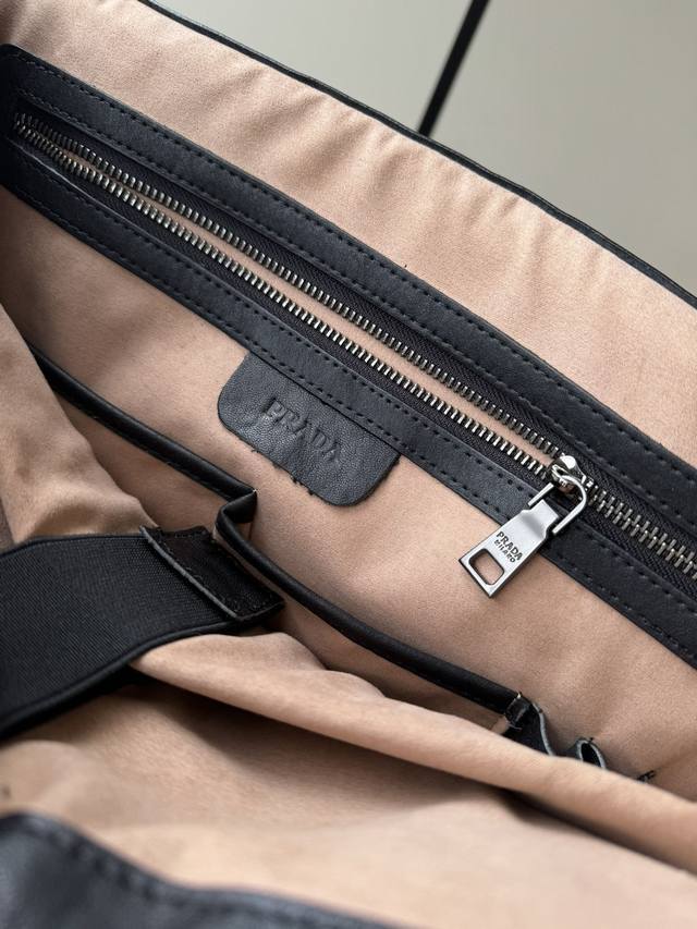 Photos are in stock. A high-end, top-tier Prada handbag is shipping in bulk. We're not going to boast about premium, original goods, but let the real thing speak for itself. While styles can be copied, the materials and craftsmanship can't fool those who understand. Premium materials inside and out: top-quality imported genuine Italian calfskin, vegetable-tanned leather, ultra-high-definition logo hardware, high-end bronze hardware, a dedicated high-end lining, dedicated hardware sliders, a zipper with a faux-teeth design that becomes smoother with each tug, and ultra-smooth oiled edges. Crafted from top-tier designer-designed, imported top-grain cowhide, this bag features a spacious, multi-compartment design with space for laptop folders and hidden zipper slots. It's a must-have for travel, incredibly comfortable, soft, and durable, with crisp leather grain. Crafted with five stitches per inch, this one-of-a-kind bag exudes elegance and substance. Top-tier craftsmanship and meticulous attention to detail ensure impeccable quality. Color: Black, Model: 6820-3, Size: 40-30-12