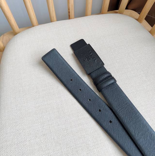 Prada Latest model from Prada counters This buckle belt is from a versatile modular accessories series that can be matched as you like. The buckle is decorated with a lettering logo. The simple silhouette highlights the unique characteristics and modern sense. It presents a refined texture. Width: 3.5Cm