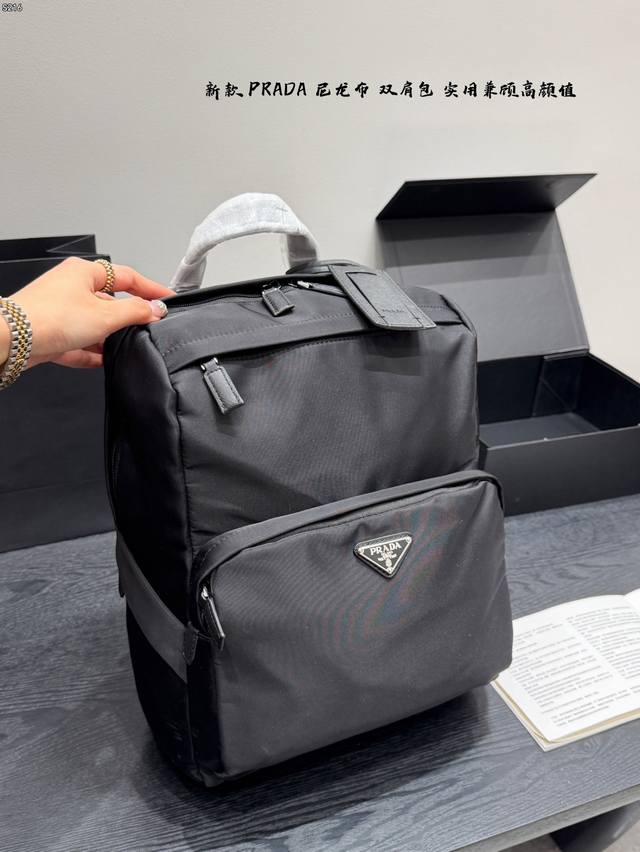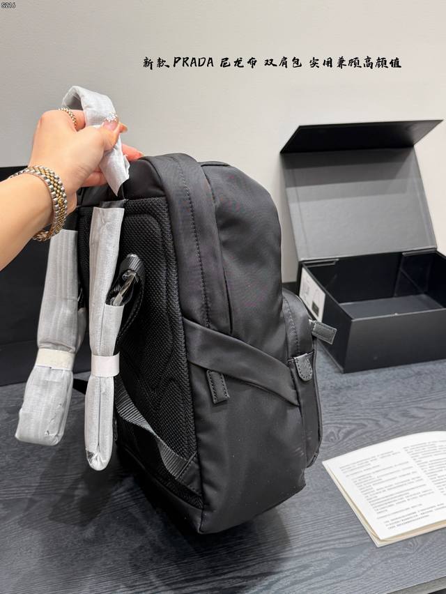 Prada Nylon Backpack (Ddd) Made of recycled nylon, this backpack is lightweight, durable, and slightly waterproof. The simple design combines sporty and stylish elements. It has a large capacity, making it suitable for commuting and short trips. The adjustable shoulder straps are comfortable to wear. Practical and stylish, a must-have for trendsetters (Ddd) Dimensions: 37*36cm (DDD)