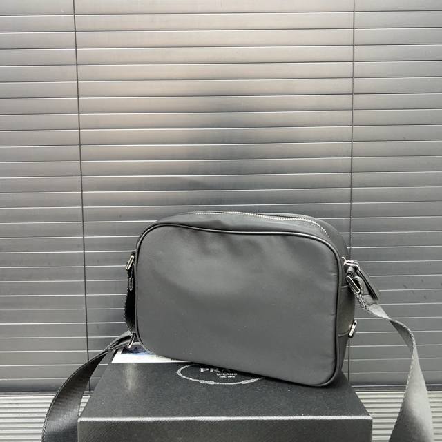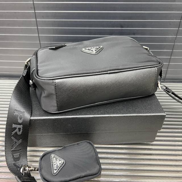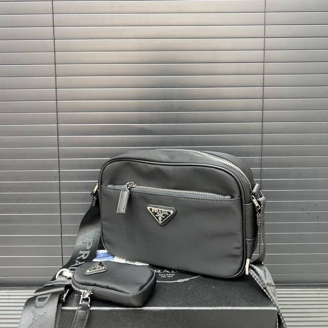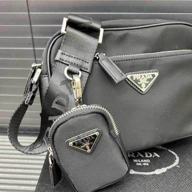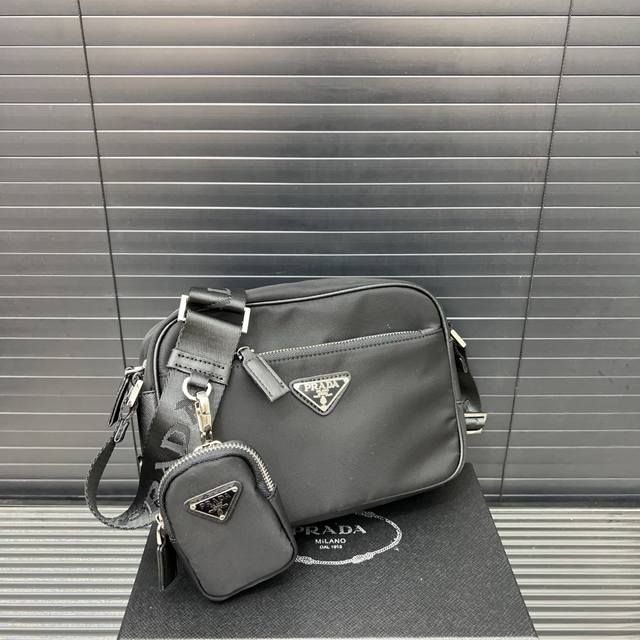 Prada Two-In-One Men's Canvas Single-Shoulder Crossbody Bag Classic Versatile Actual Product Photography Original Factory Fabric High-End Quality Dust-Proof Bag Included 23 X 15 Cm.