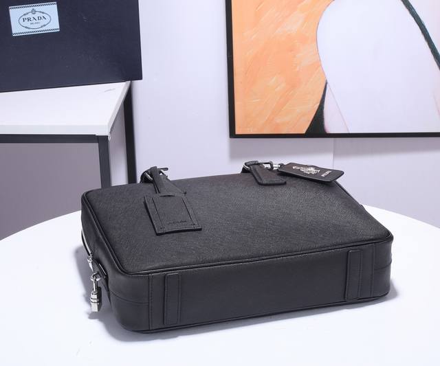 Prada's latest hot-selling model: P10420 Men's briefcase, genuine factory quality! 165 production code + Italian made mark. European factory-supplied cross-grain cowhide! Original factory hardware and logo! Top-notch craftsmanship, a must-have for the modern man! Impeccable! Available in black, blue, and burgundy! Dimensions: W36 H28 D7.5Cm