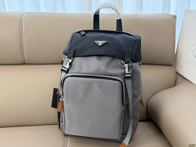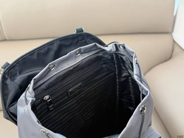 Prada's new backpack. Meets daily needs, freeing your hands. Versatile design, very spacious. Made of imported nylon, understated and simple. The bag is resistant to deformation and lightweight. Sizes 26-38.