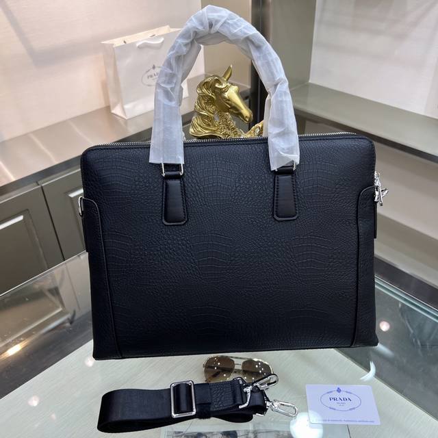 Prada's new briefcase is made of imported cowhide, with top-grade polished stai