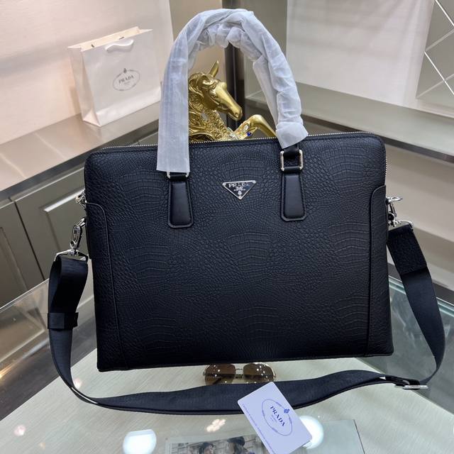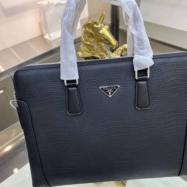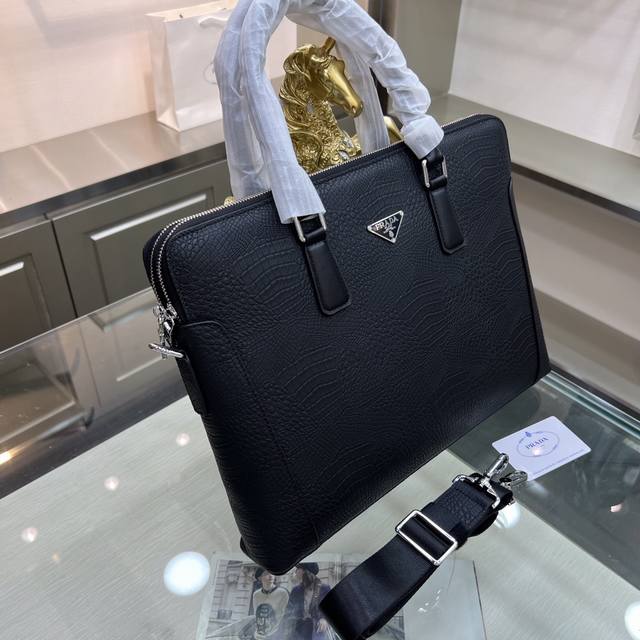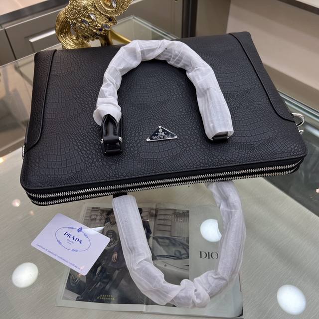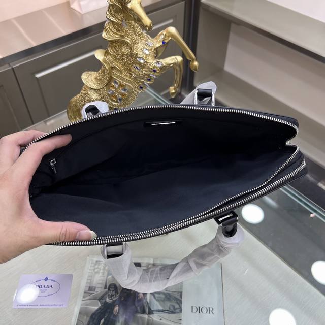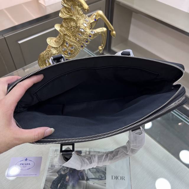 Prada's new briefcase is made of imported cowhide, with top-grade polished stainless steel hardware, a triangular enamel logo on the front, and a double zipper design. It is simple and elegant, a favorite of successful business men!
