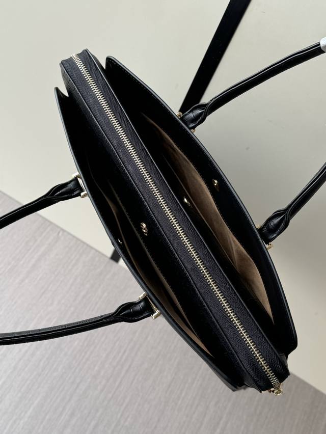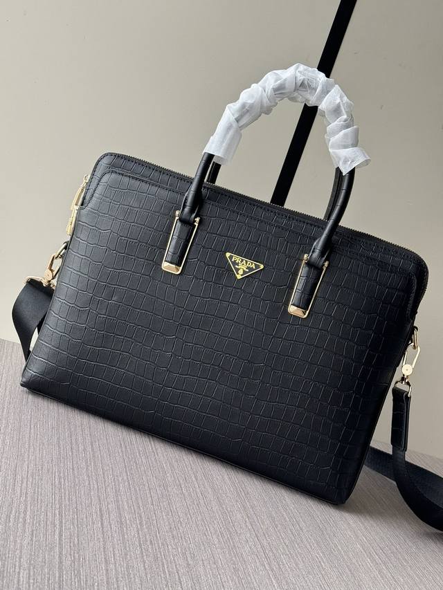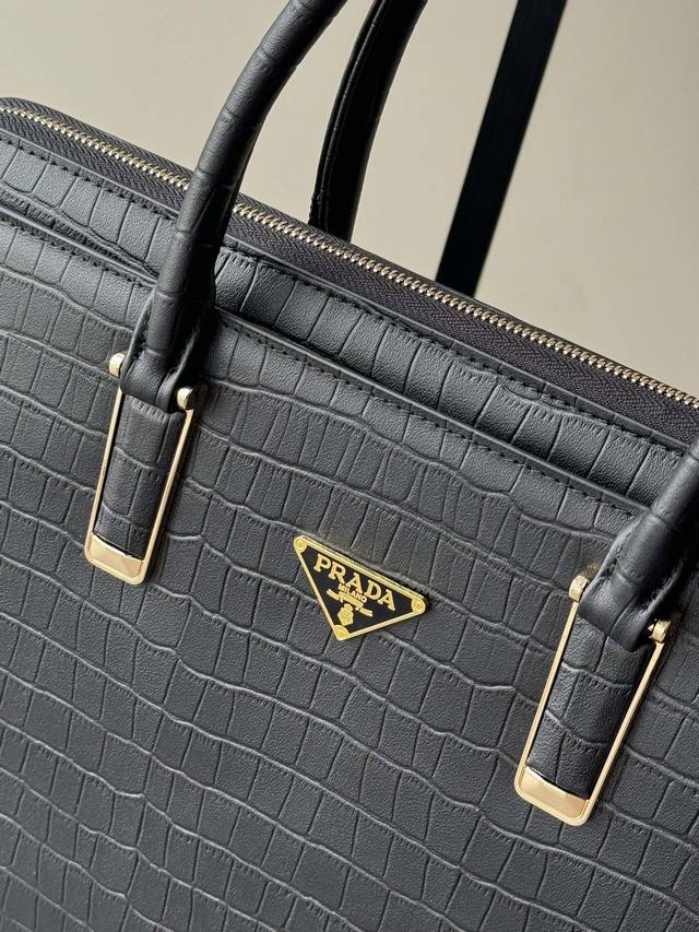 The latest and hottest Prada combination lock briefcases are shipping in bulk. We won't boast about premium counter-selling products, but let the real thing speak for itself. The style can be copied, but the materials and workmanship can't fool those who understand. Premium materials inside and out: top-grade imported genuine Italian calfskin with a floral pattern, a high-end logo, premium counter hardware, a dedicated high-end velvet lining, stainless steel combination lock hardware, a zipper with faux-teeth that becomes smoother with each tug, and ultra-smooth oiled edges. Crafted from top-tier designer-designed, imported top-grain cowhide, this bag features a spacious, multi-compartment zipper pocket with a phone slot and a hidden zipper slot. This travel essential is incredibly comfortable, soft, and durable, with crisp leather grain. Crafted with five stitches per inch, this one-of-a-kind bag exudes elegance and substance. Top-tier craftsmanship and meticulous attention to detail ensure this unique piece exudes elegance and substance. Color: Black, Model: 2820-1p, Size: 39-30-7
