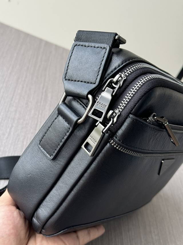 The latest hot Prada messenger bag from the top counter mouse, high-end and fierce goods, is shipped in large quantities. We are not good at talking about counter goods and bragging about them on paper. Please let the fierce goods speak. The style can be copied and plagiarized, but the materials and workmanship cannot deceive those who understand. The inside and outside are all top-quality materials, top-quality imported original leather, Italian imported calfskin grain, ultra-high-definition hardware logo, high-end bronze hardware, special high-end lining, special pull head, imitation burst teeth, the smoother the zipper is pulled, the top oil edge is super smooth, top designers create unique leather imported first-layer cowhide style production, super-large capacity space, multi-compartment zipper pocket design, mobile phone position + dark pull zipper position, zipper pocket position on the back, a must-have for easy carrying when going out, super comfortable, soft and wear-resistant leather with clear texture, one-inch five-needle stitches, made by top masters, the texture is impeccable, unique, atmospheric and connotative. Top-quality workmanship and exquisite attention to every detail! Color: Black, Model: 340A, Size: 26-19-8