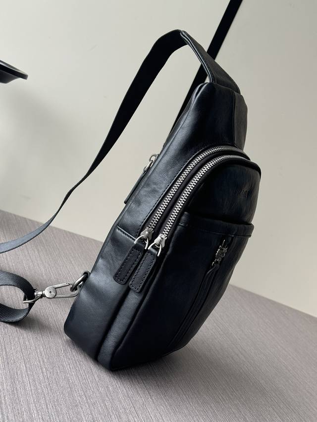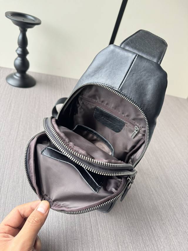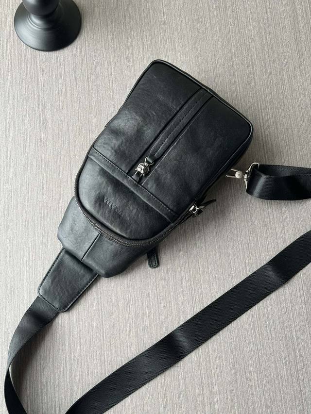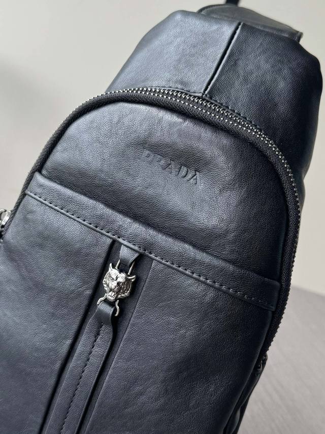 Top-tier counter goods, the latest Prada full-leather chest bag, a popular universal model, shipped in large quantities. We won't brag about counter goods, but we'll let the goods speak for themselves. The style can be copied, but the materials and workmanship can't fool those who understand. It's made of top-tier materials inside and out, including top-tier imported genuine Italian calfskin vegetable tanned leather with an ultra-high-definition embossed logo, top-tier counter leather pulls, and a high-end counter lining. The top-tier oiled edges are super smooth, and top-tier designers create unique imported calfskin styles. It has an ultra-large capacity design, a super comfortable and soft feel, and clear leather texture. The stitching is done by top-tier masters with five stitches per inch, resulting in an impeccable texture. It's one-of-a-kind, with both elegance and substance. Top-tier workmanship and exquisite attention to every detail! A must-have for casual and fashionable men and women going out on a date. 6555 Color: Black, Size: 30-17-7