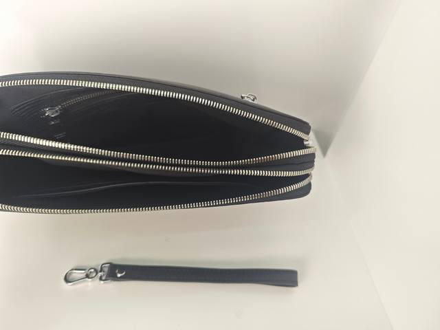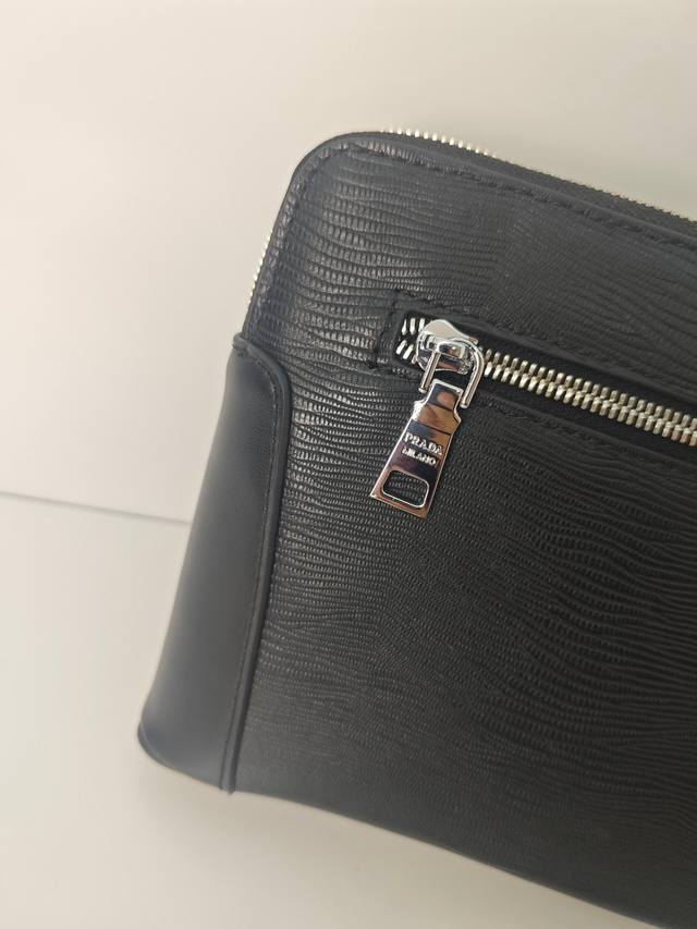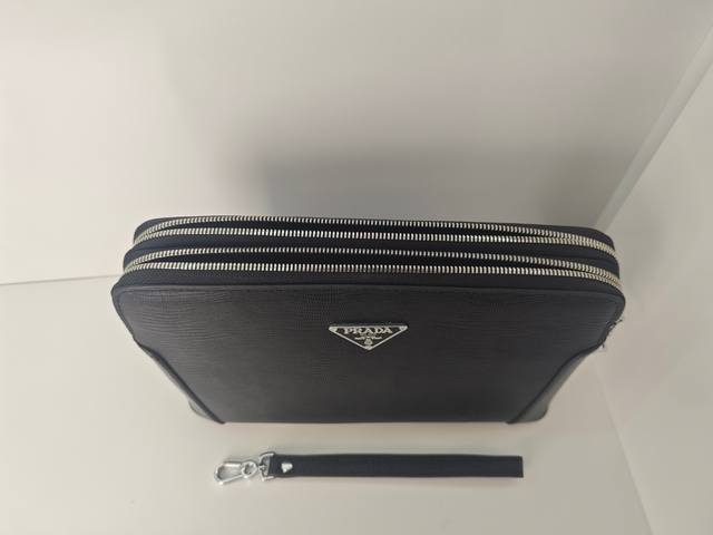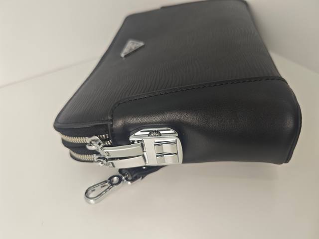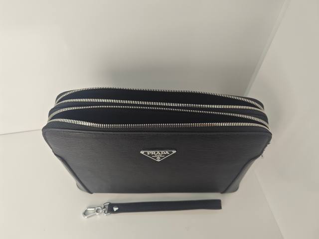 Top-tier counter-selling, high-end, and hottest item of 2025, this Prada double-zip combination lock imported top-grain cowhide clutch is shipping in large quantities. We won't boast about top-tier counter-selling, genuine goods, but let the real thing speak for itself. The style can be copied, but the materials and craftsmanship can't fool those who understand. Premium materials inside and out: top-quality imported genuine leather, embossed Italian calfskin with ultra-high-definition hardware logos, high-end hardware, a dedicated high-end cotton lining, a dedicated YKK slider, a zipper with a faux-tooth design that becomes smoother with each pull, and super-smooth oiled edges. Uniquely crafted by top designers, this top-tier cowhide clutch features embossed leather with a unique leather grain design. It has an oversized compartment design with a phone holder and hidden zipper slot. It's incredibly comfortable, soft, and durable, with crisp leather grain. Crafted by top-tier craftsmen with five stitches per inch, the texture is impeccable, and this one-of-a-kind piece exudes elegance and substance. Top-tier craftsmanship and meticulous attention to detail ensure every detail! Color: Black Model: 8519-4 Size: 27-17-4