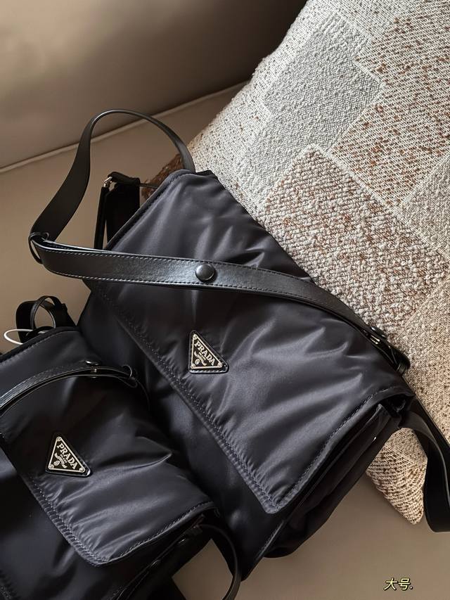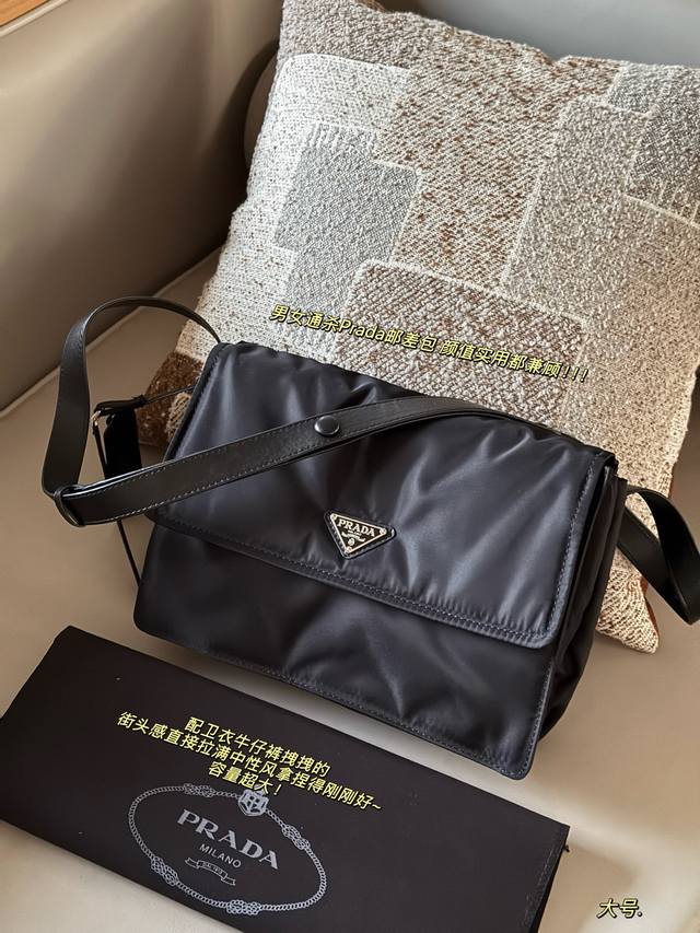 Prad messenger bag with folding box. Super spacious, unisex design. Simply put, it's stylish! Dimensions: 24*18cm (small), 30x21.5cm (large).