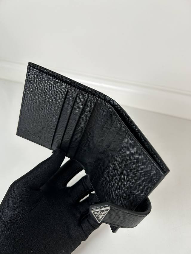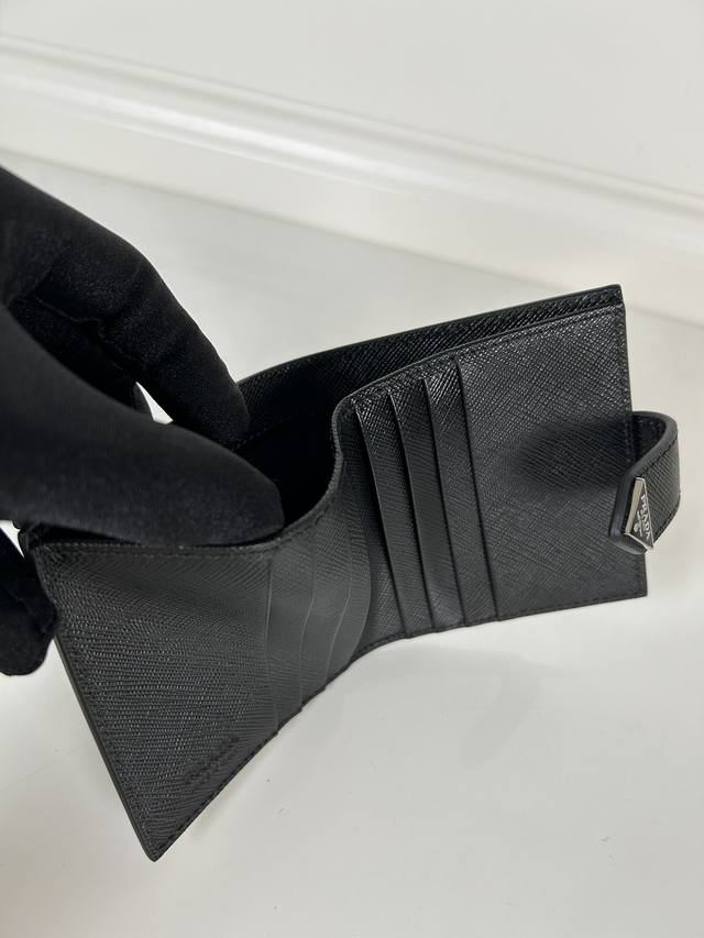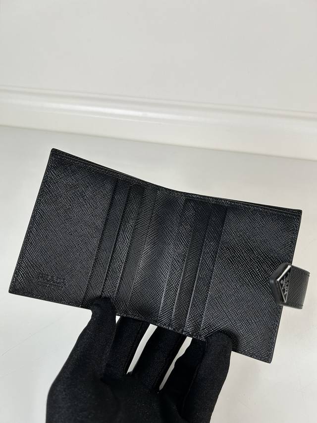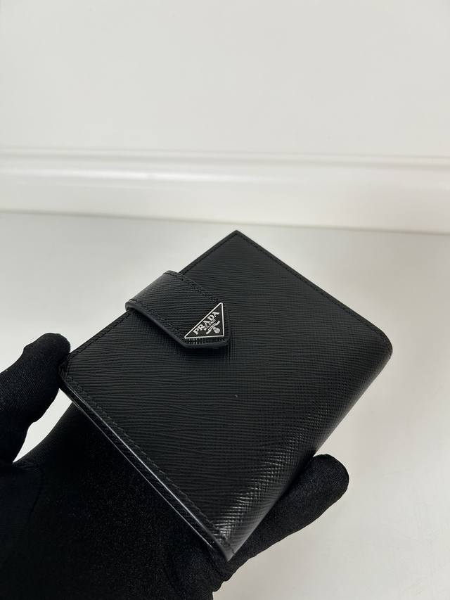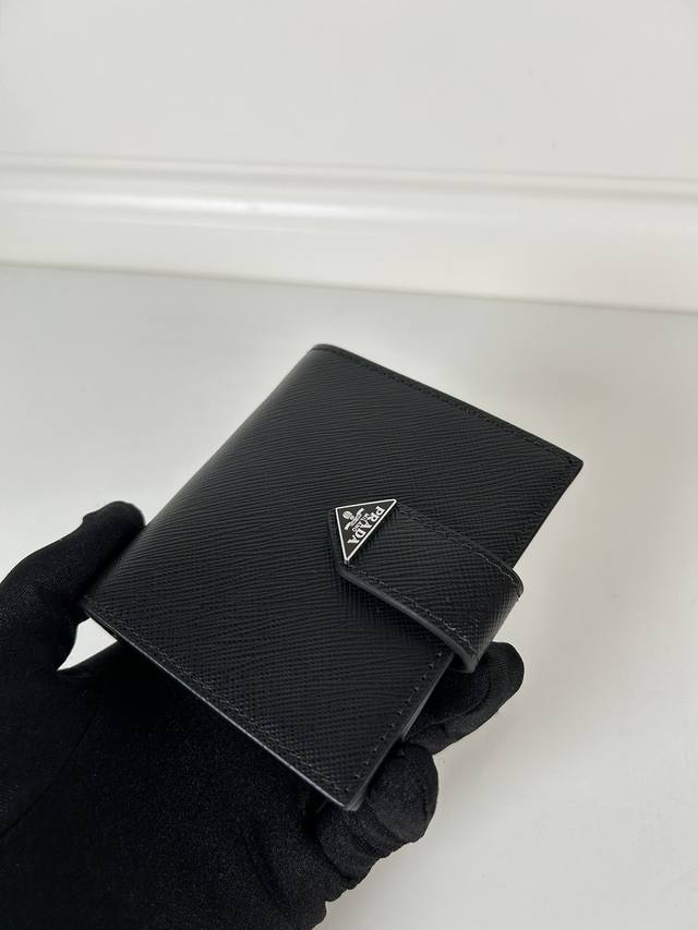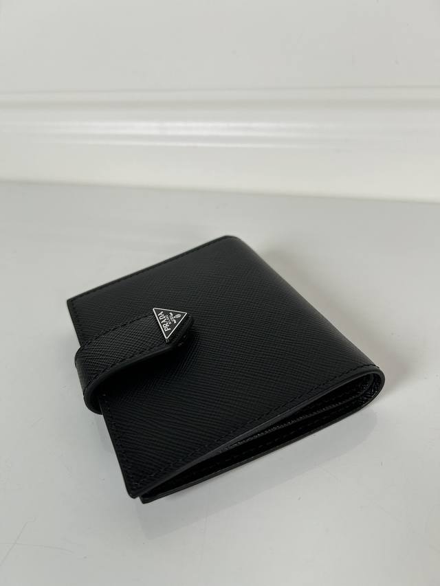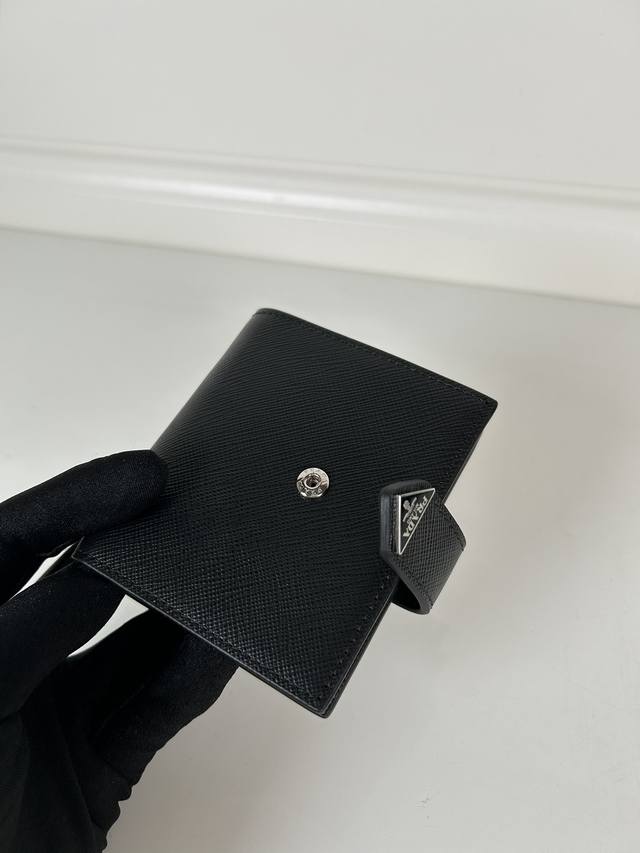 A unisex short wallet from Pixnet, model 2Mo004, made of cross-grain cowhide, featuring the latest micro-logo triangular design, a more practical snap closure, a simple and elegant design, eight card slots, 9cm length and 10cm height, 175 steel stamp, and meticulous and neat workmanship as shown in the picture.