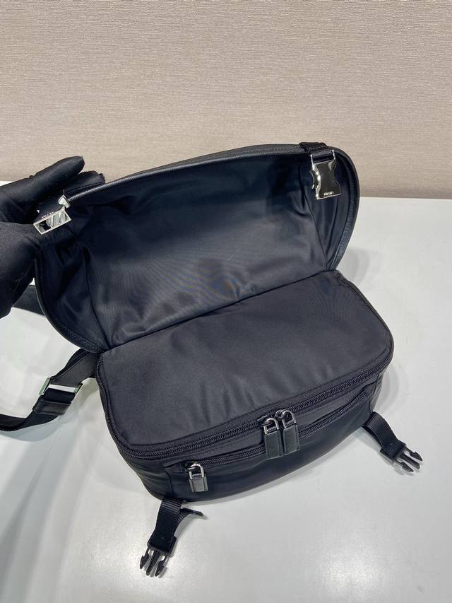This flap-top shoulder bag is crafted from signature Piguet materials such as nylon and Saffiano leather. The shoulder bag features internal and external pockets and is adorned with a triangular metal logo, combining functionality with brand style. It looks incredibly cool when worn; simple yet sophisticated, grab one now