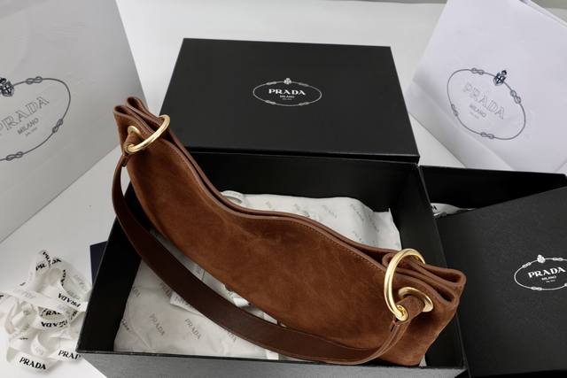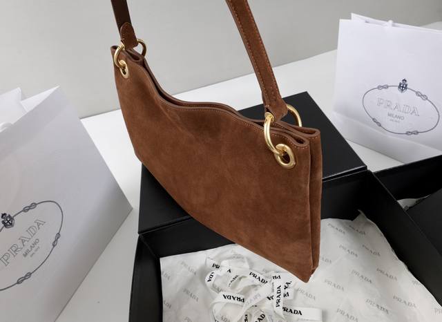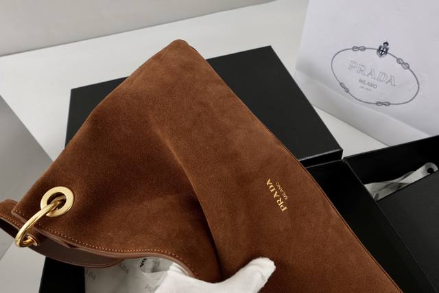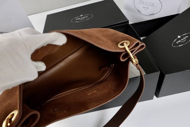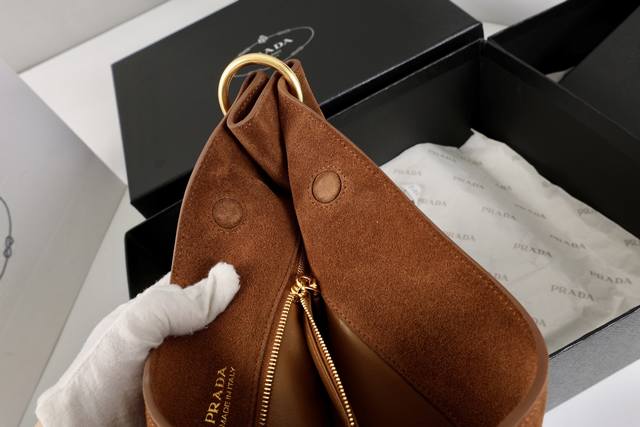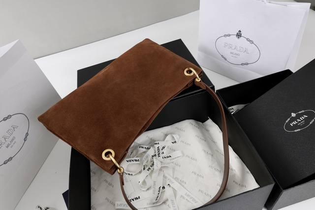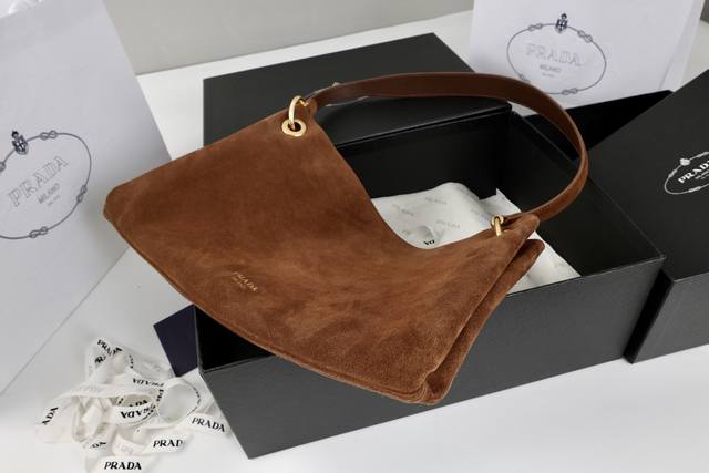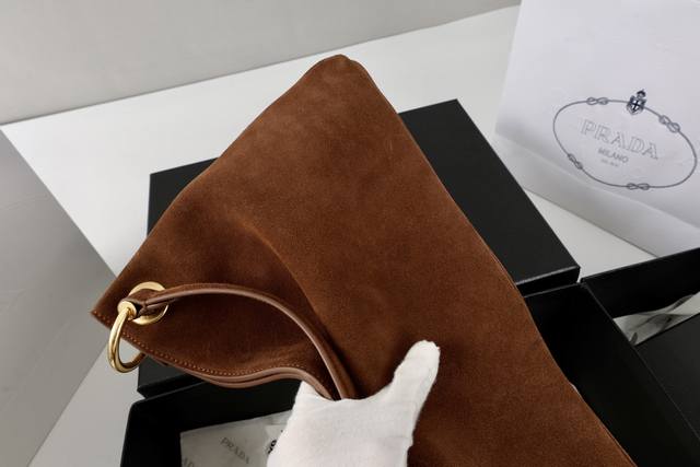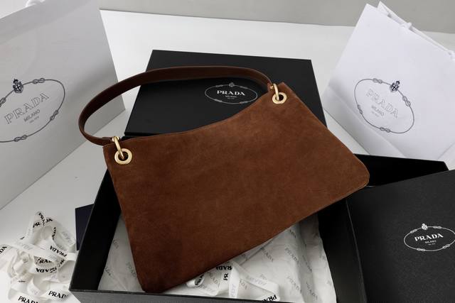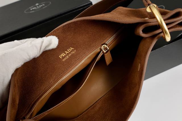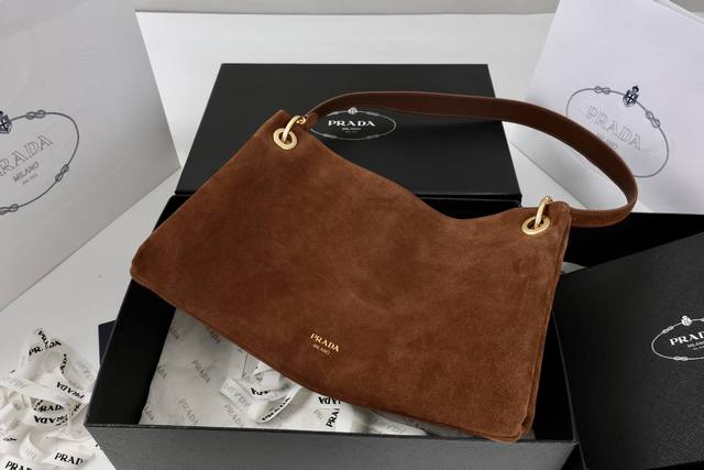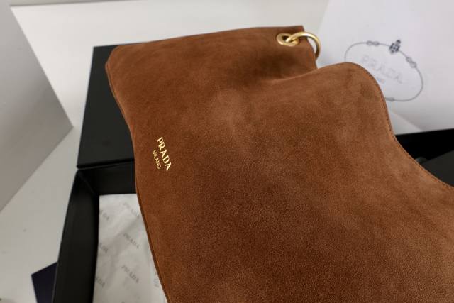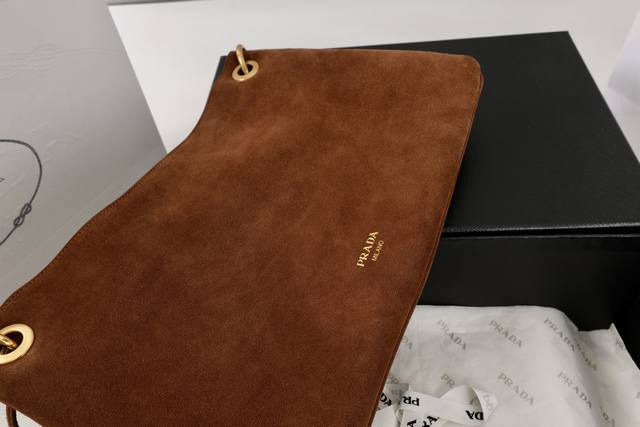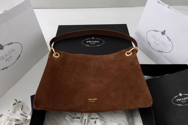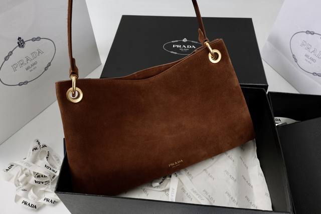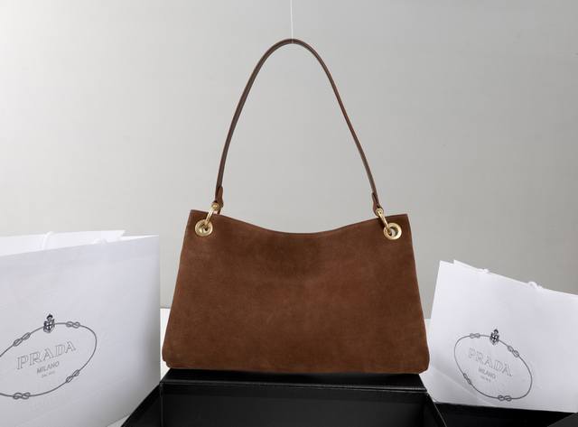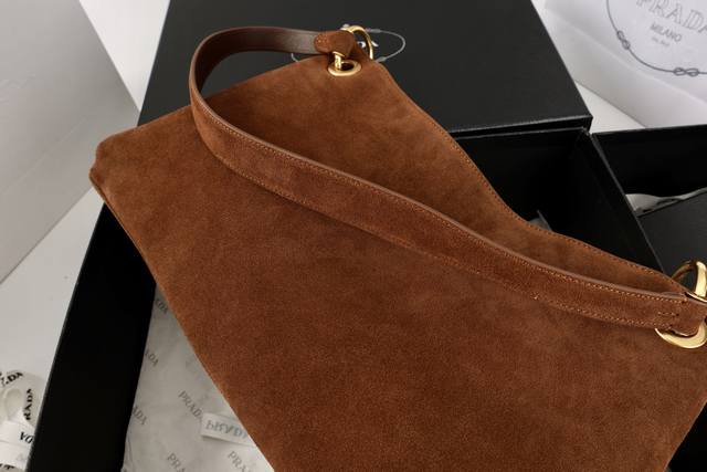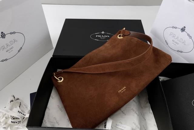 Genuine Suede Leather DDD Description: Etude Large Suede Leather Tote/Shoulder Bag DDD Prada embodies modern sophistication, blending timeless Italian craftsmanship with an innovative spirit. The Etude Large shoulder bag is crafted from supple suede, featuring exquisite gold hardware and magnetic fasteners. DDD Model 1Bc229 Cocoa Brown DDD Material: Imported genuine suede leather and top-grain cowhide DDD Dimensions: 41X23X1.5Cm DDD