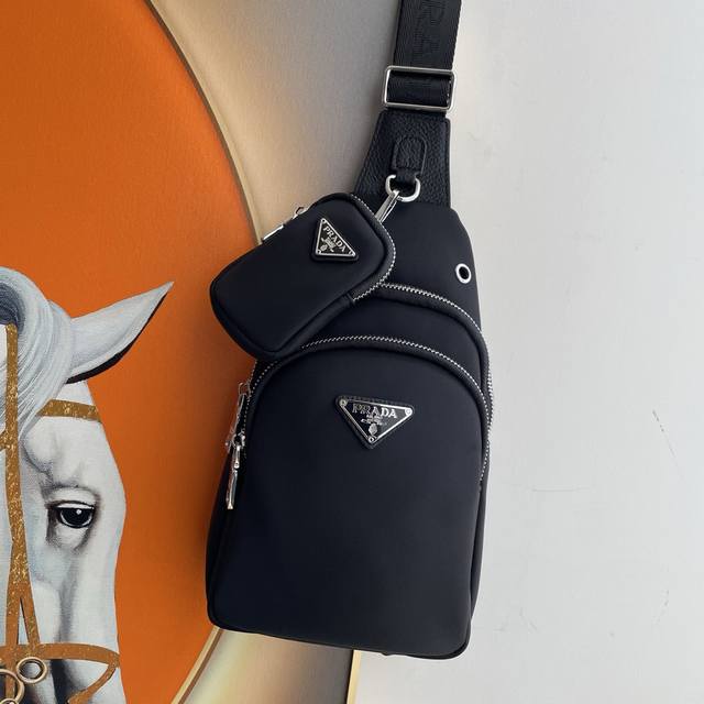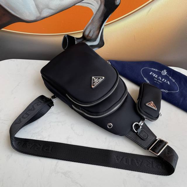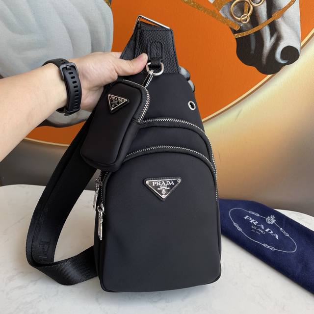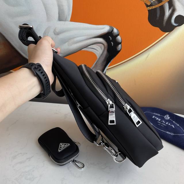 Latest Prada style men's chest bag, original quality. Made of imported nylon fabric, lightweight, comfortable, smooth texture, delicate feel. High-end hardware, understated luxury, stylish, casual, handsome, convenient and practical. It looks cool and stylish from every angle, guaranteeing a 100% head-turning rate on the street. If you're worried about bumping into someone with the same bag, you should definitely get ours! We only make top-quality goods. Model: 2037, Size: 29