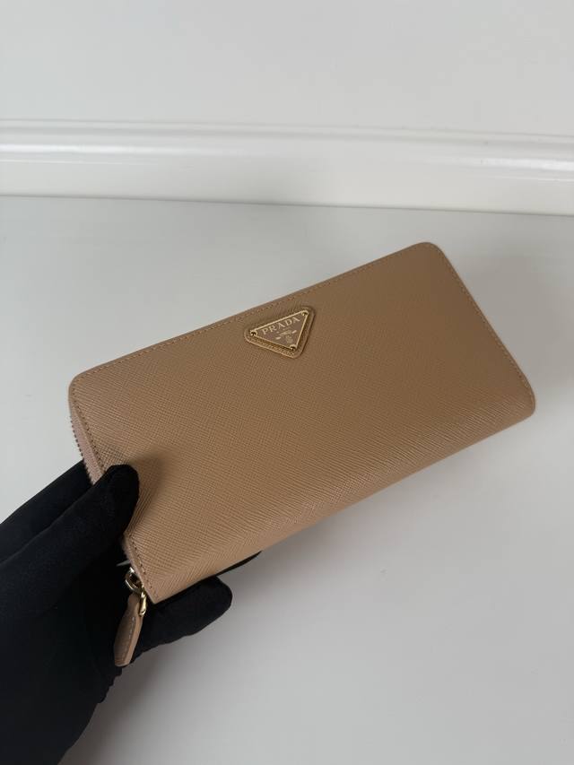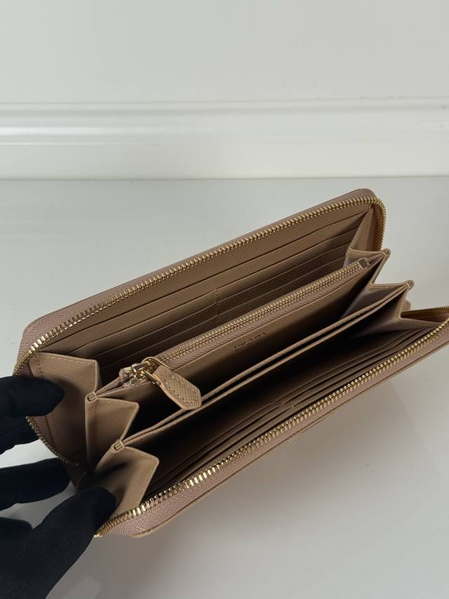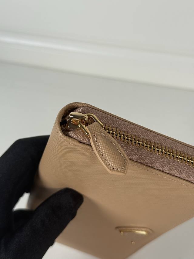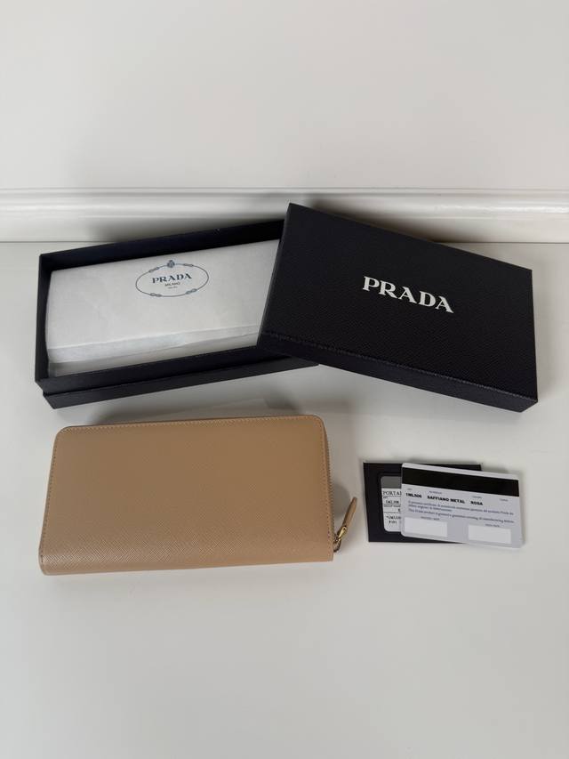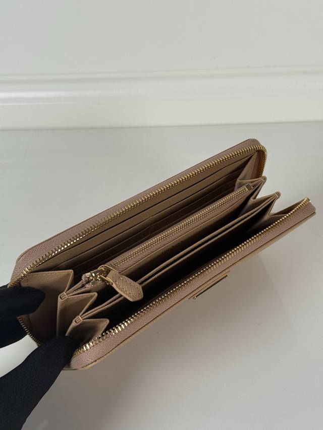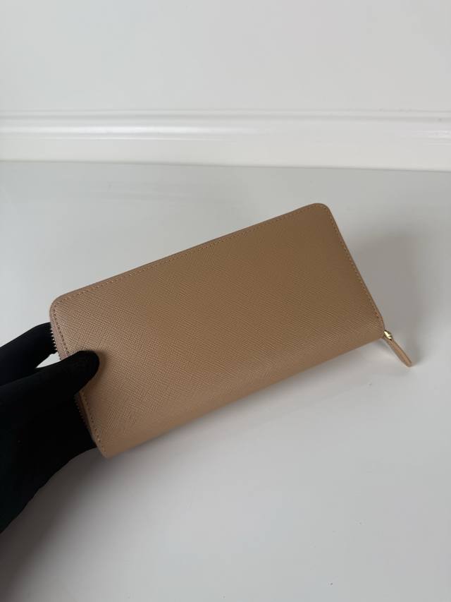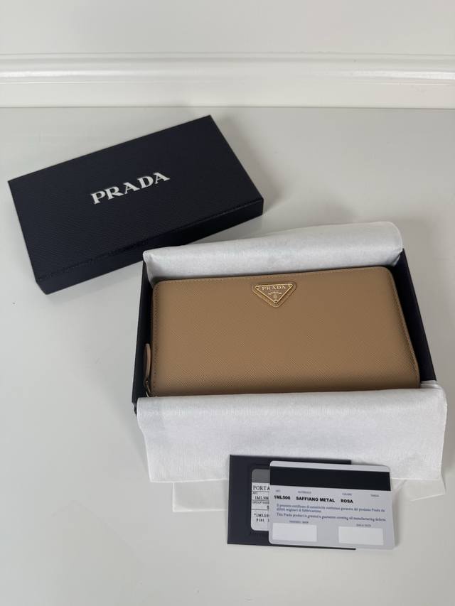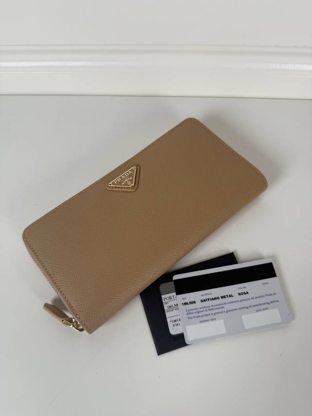 P brand cross-grain single zipper wallet, nude color, model 1ML506, original quality, made of cross-grain cowhide, size 20