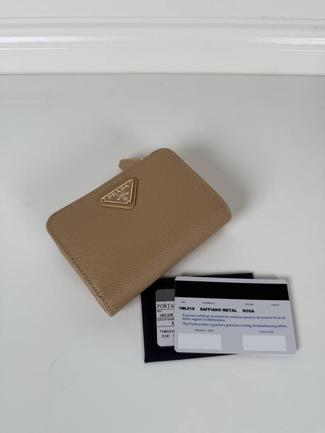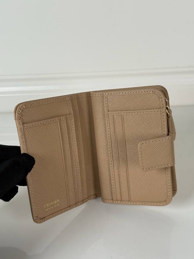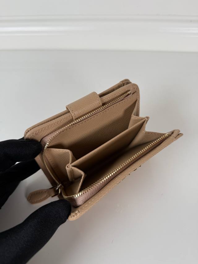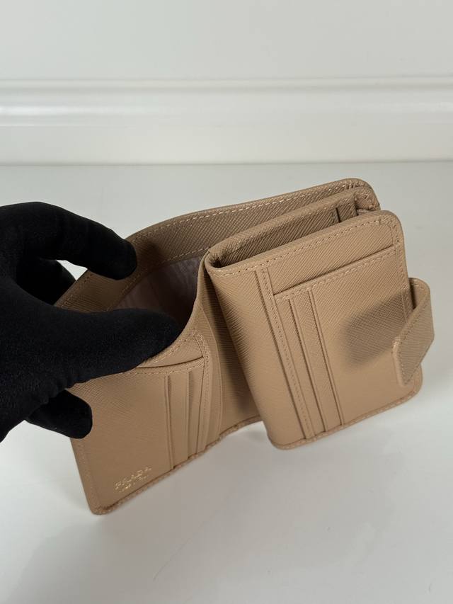 P brand women's cross-patterned short wallet, model 1Ml018, snap closure design, 9 card slots, one bill compartment, and one zippered compartment. Dimensions 12 x 8cm, compact yet fully functional, combining practicality and style. Can be held in hand or placed in a bag. Superior workmanship and quality, a tasteful choice, perfect for personal use or as a gift.