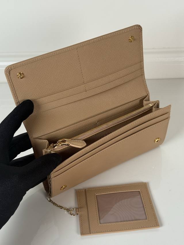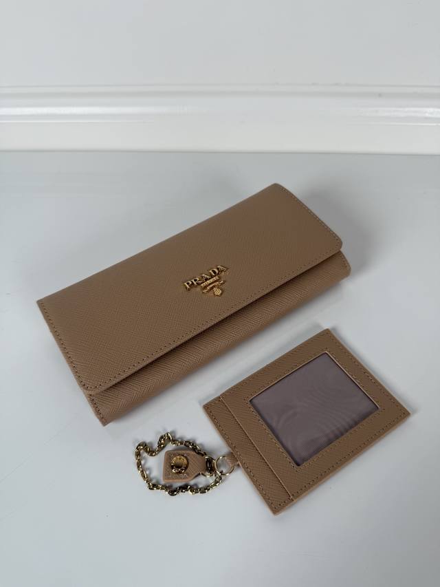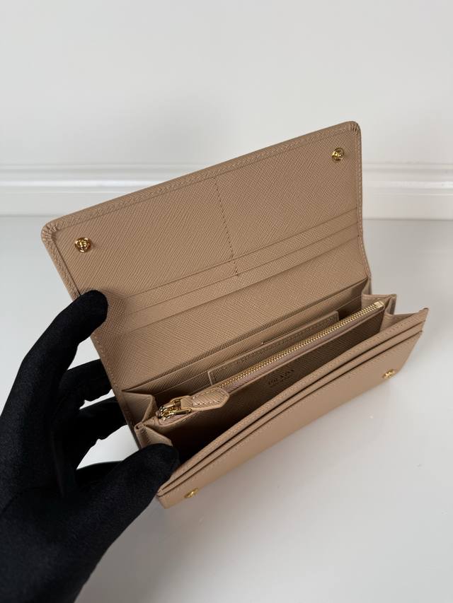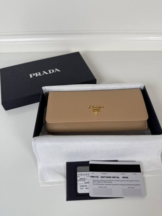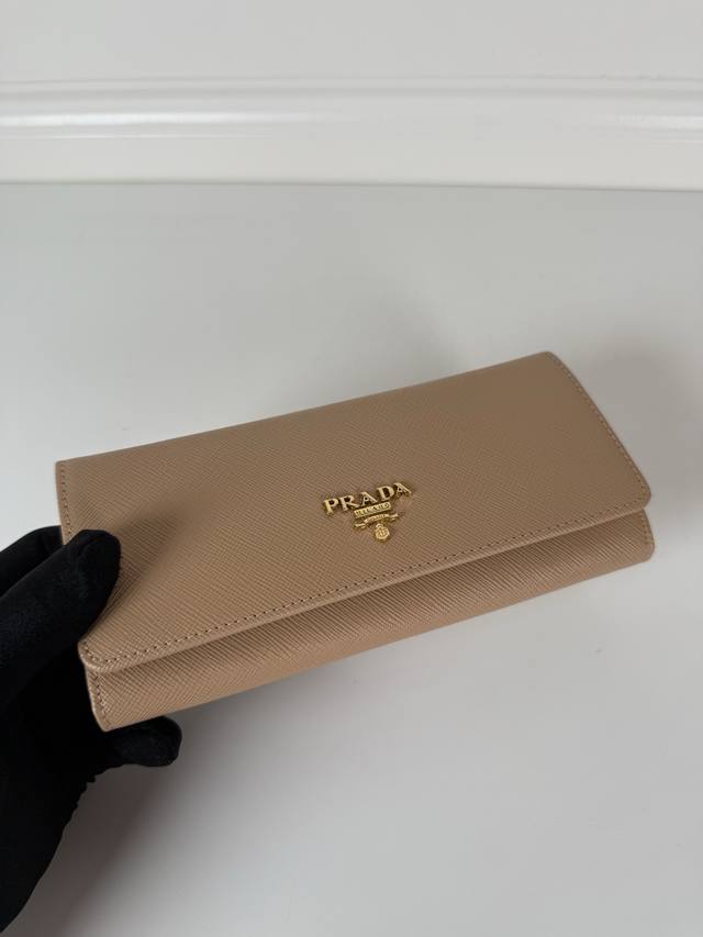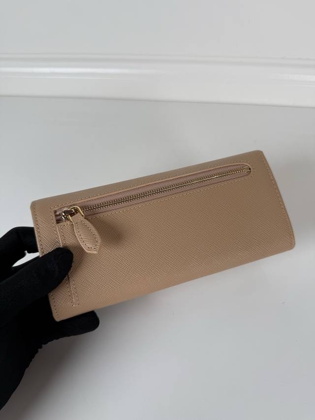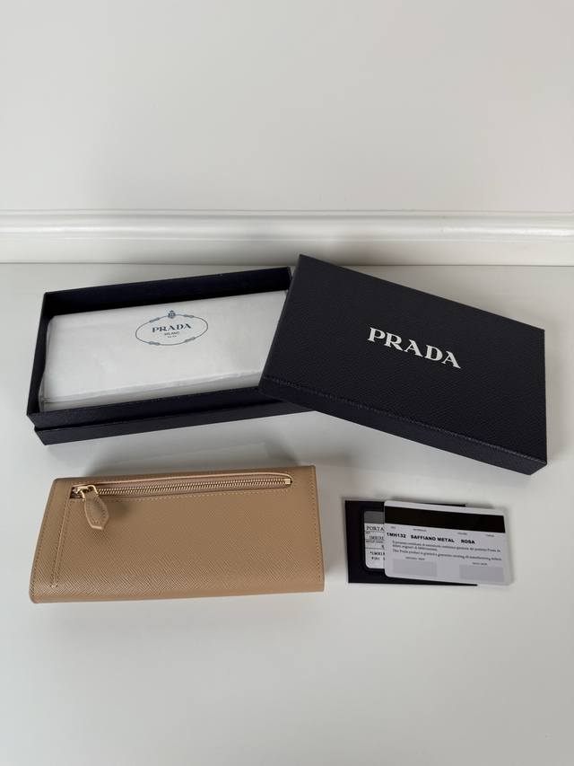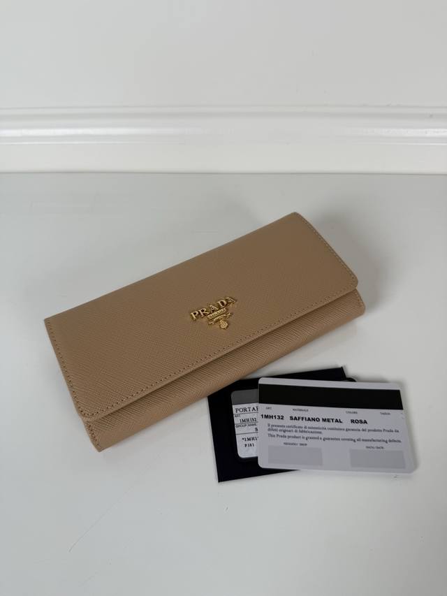 P brand women's flip wallet, model 1Mh132, nude color, made of imported cross-grain cowhide, original quality, size 18.7X9.5Cm, actual product photos, what you see is what you get.