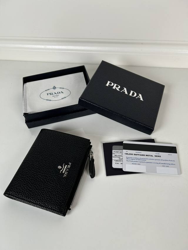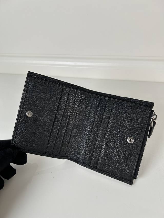 Panerai unisex short wallet, model 1ML050, made of deerskin or cowhide, eight card slots, one bill compartment, one zippered coin pocket, length 11.5cm, height 9.5cm, 175 steel stamp, meticulous and neat workmanship as shown in the picture.