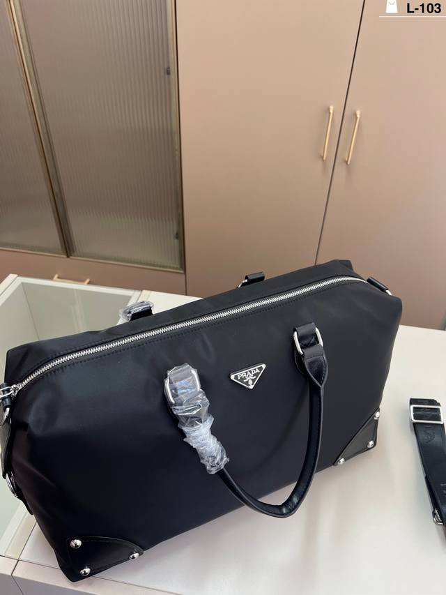 prada Prada Saffiano nylon fabric triangle logo travel bag airport bag handbag bag with exquisite inlay work L-103 size 46