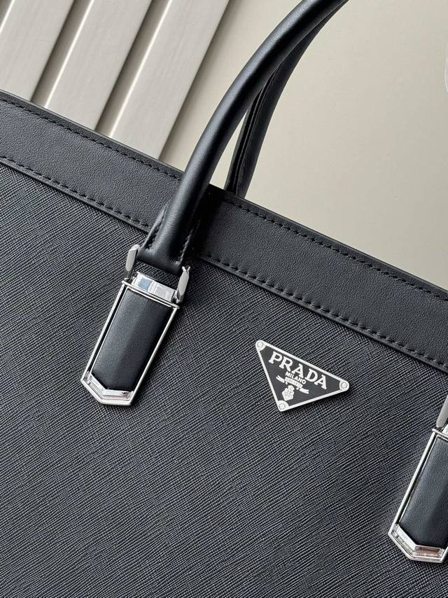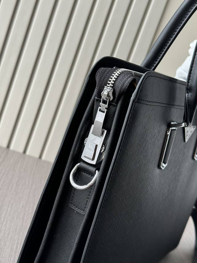 The latest and hottest Prada combination lock briefcase from the top-tier boutique is now shipping in large quantities. We won't boast about premium, original, and counterfeit goods; let the real thing speak for itself. While styles can be copied, the materials and craftsmanship can't fool those who understand. Premium materials inside and out: top-grade imported genuine Italian calfskin with a floral pattern, high-end hardware, and a combination lock. Specialized high-end lining, imitation zippers that become smoother with each tug, and ultra-smooth oiled edges. Crafted from top-tier designer-designed, unique imported top-grain cowhide, this bag boasts a generous compartmentalized design with multiple zipper pockets, a phone slot, and a hidden zipper slot. This travel essential is incredibly comfortable, soft, and durable, with crisp leather grain. Crafted with a one-inch, five-stitch stitching by a master craftsman, the texture is impeccable, and this one-of-a-kind bag exudes elegance and substance. Top-tier craftsmanship, meticulous attention to every detail, ensures exceptional craftsmanship and attention to detail. Color: Black, Model: 2829-1, Size: 39-29-7