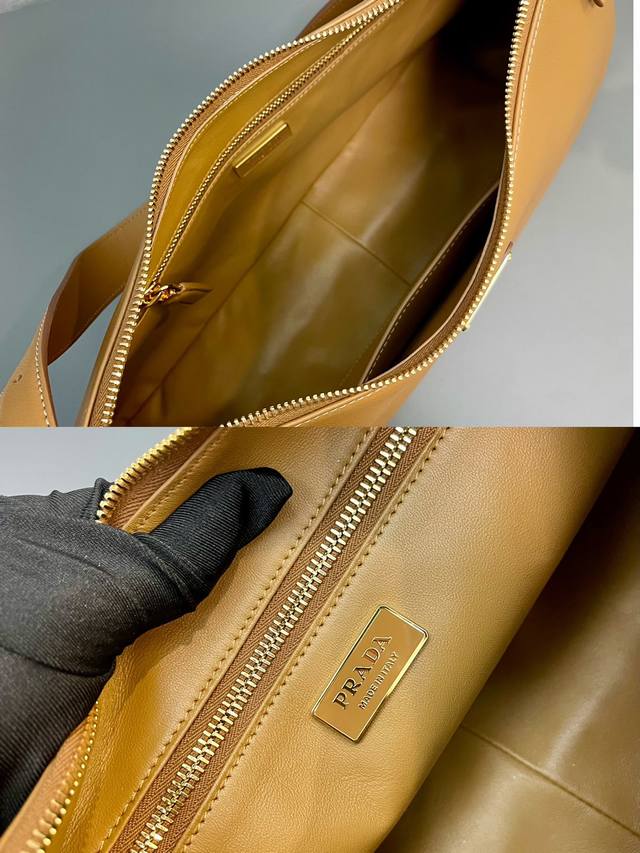 Top-quality original Prada large handbag 1Bc228 has arrived! This new shoulder bag's design is inspired by the Hobo silhouette, featuring soft lines and a modern feel. The leather is supple and incredibly versatile, offering multiple ways to wear it. The elegant leather contours combined with its large capacity provide ample space. It includes an interior zip pocket, a slip pocket, and metal hardware accents. The overall look is very stylish and sophisticated. Grab yours now