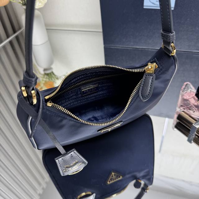 Top-quality original Prada new leather shoulder bag with a versatile design. This women's nylon shoulder bag, model 1N204M, is made of imported original parachute fabric with cross-grain cowhide handles. It's a lightweight and practical Hobo bag, super simple and stylish. Small and lightweight, it can hold a lot and is easy to match with any outfit. It can also be carried by hand, making it incredibly useful. Currently, it's the hottest bag among celebrities. Aren't you tempted? Ladies, hurry! Dimensions: Length 22cm, Height 18cm, Base 6.5cm.