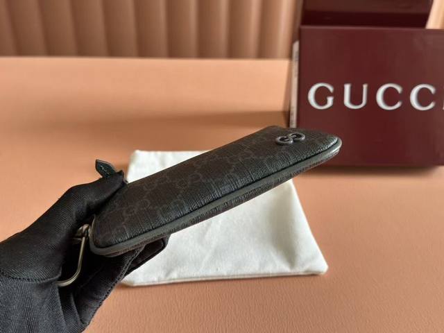 Premium Edition, Style 820666, the latest in our collection of small leather goods, features a thin, compact silhouette, new colorways, and a two-tone design adorned with the Gg logo. This keychain is crafted from a gray and black Gg Supreme fabric and sports a gray smooth leather finish with Gg tonal details on the zipper and inner hook.