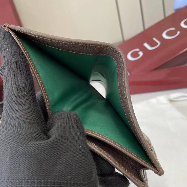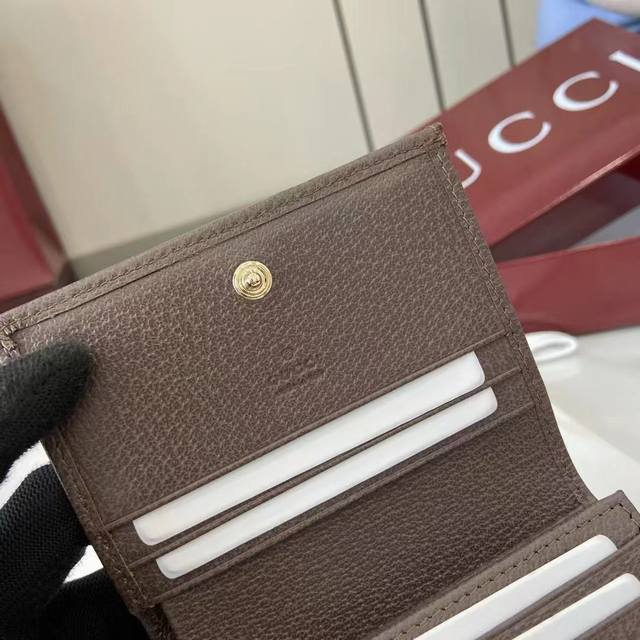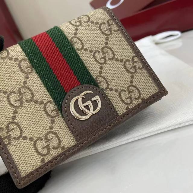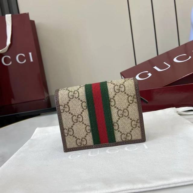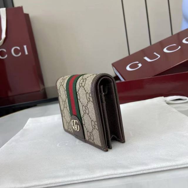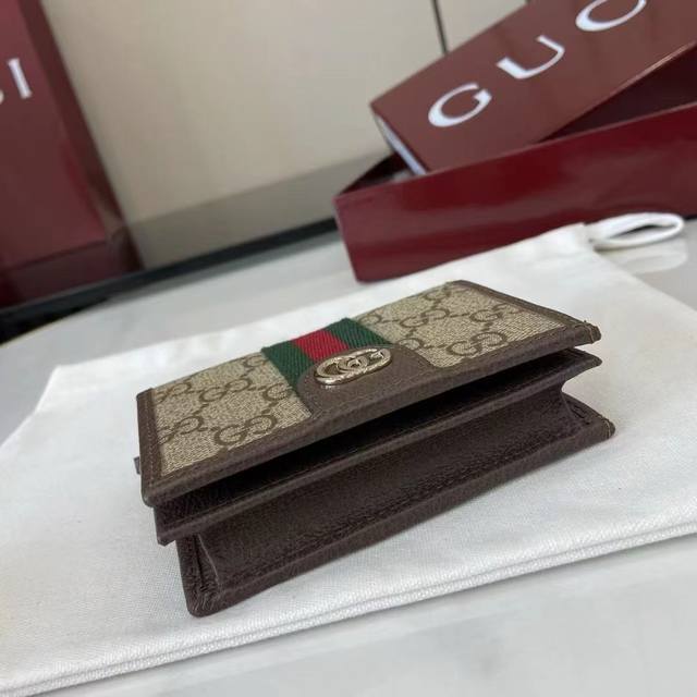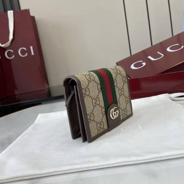 The premium new Ophidia collection showcases striking new silhouettes and practical, functional designs, expertly crafted in the signature beige and brown colorway to create soft accessories, a signature example of which is this wallet.