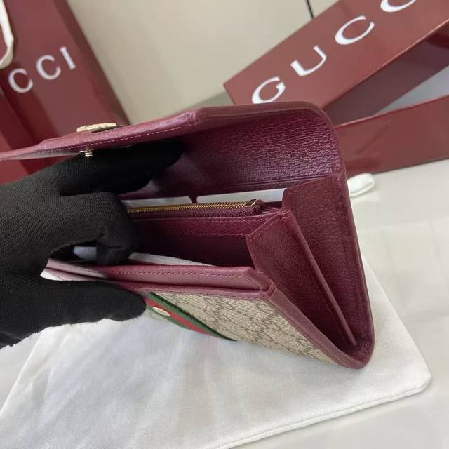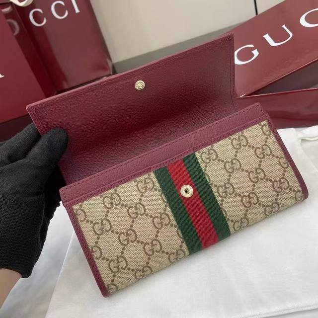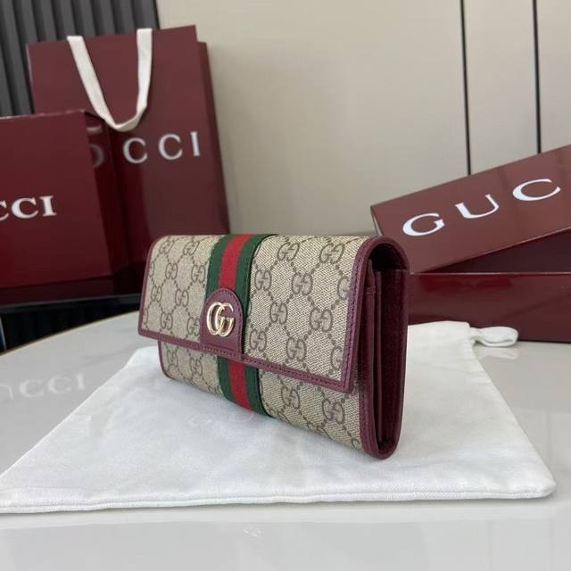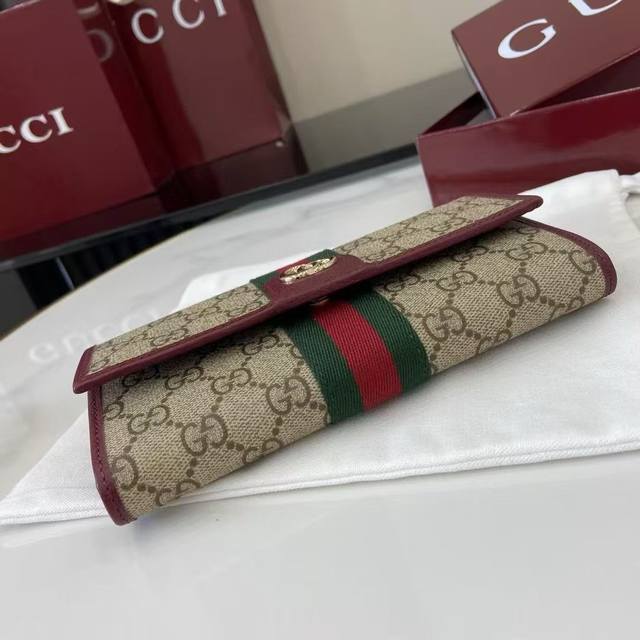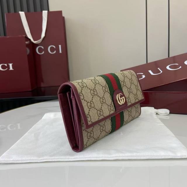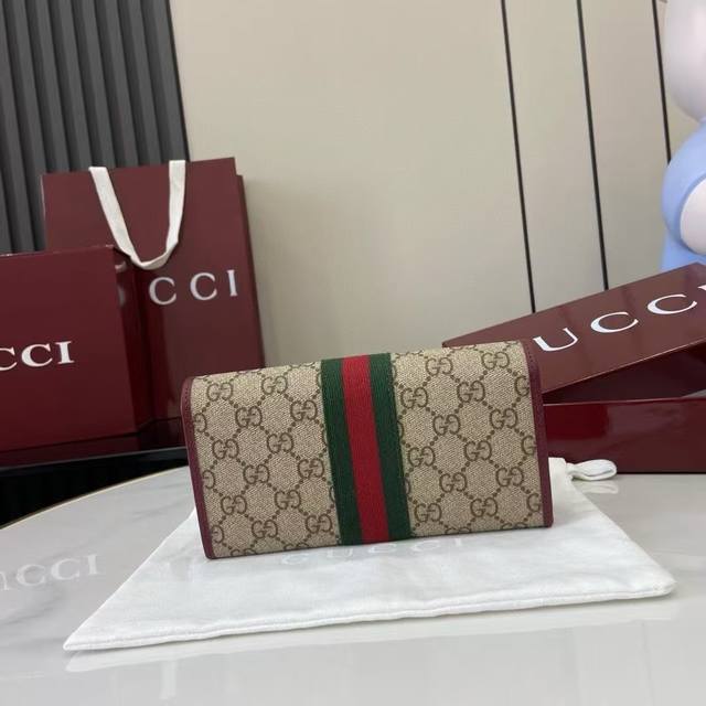 The premium new Ophidia collection showcases striking new silhouettes and practical, functional designs, expertly crafted in the signature beige and ancora colorway to create soft accessories. This long wallet is a prime example.