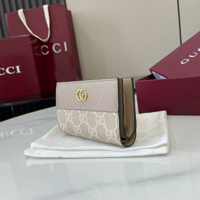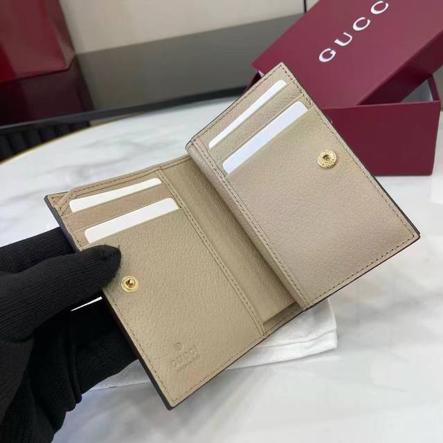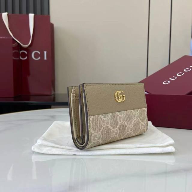 The top-of-the-line Double G hardware, inspired by a classic 70s design, continues to shine in the Gg Marmont collection. This card holder is crafted from beige and oatmeal Gg Supreme canvas with oatmeal leather details.