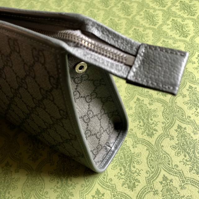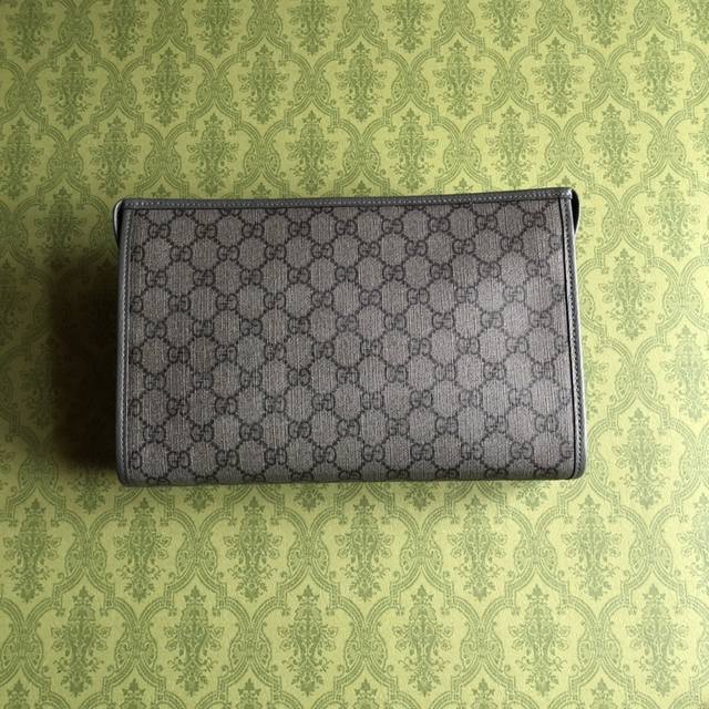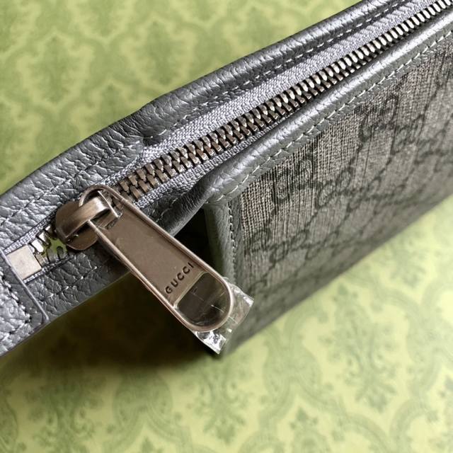 This premium, high-quality clutch from the latest Ophidia series by Go is a timeless classic. Made of gray Gg Supreme canvas with gray cowhide trim, it features palladium-tone hardware, including the Double G, interior zippered pocket, and zipper closure. Model : 598234. Dimensions: 28.5cm wide x 18cm high x 9cm deep. Color: gray PVC. Includes carton.