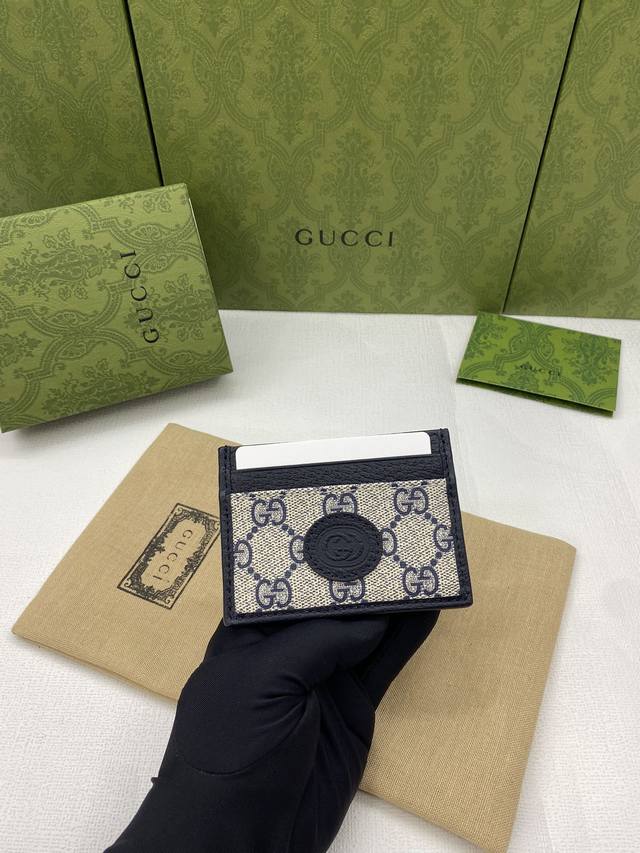 Comes in a green box. This sleek and slim wallet is crafted from blue Gg Supreme canvas, accented with tonal leather trim and an interlocking double G logo, highlighting the charm of its classic design. Features include: Blue Gg Supreme canvas (eco-friendly material); Blue leather trim; Viscose lining; Oval interlocking double G leather logo; Eight card slots; Two bill slots. Dimensions: 10 x 7 cm; Color: Blue PVC; Model Number: 673002.