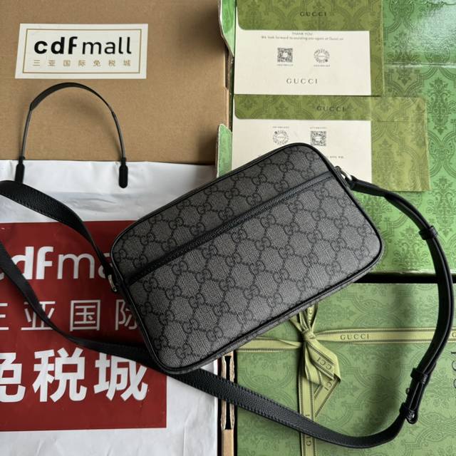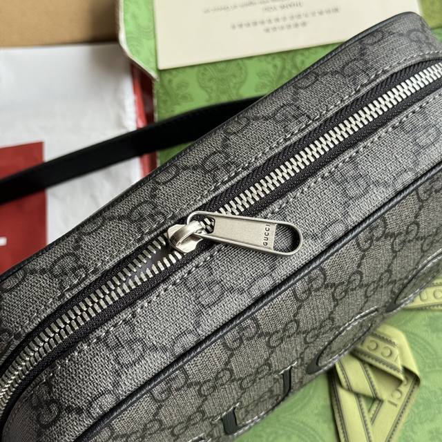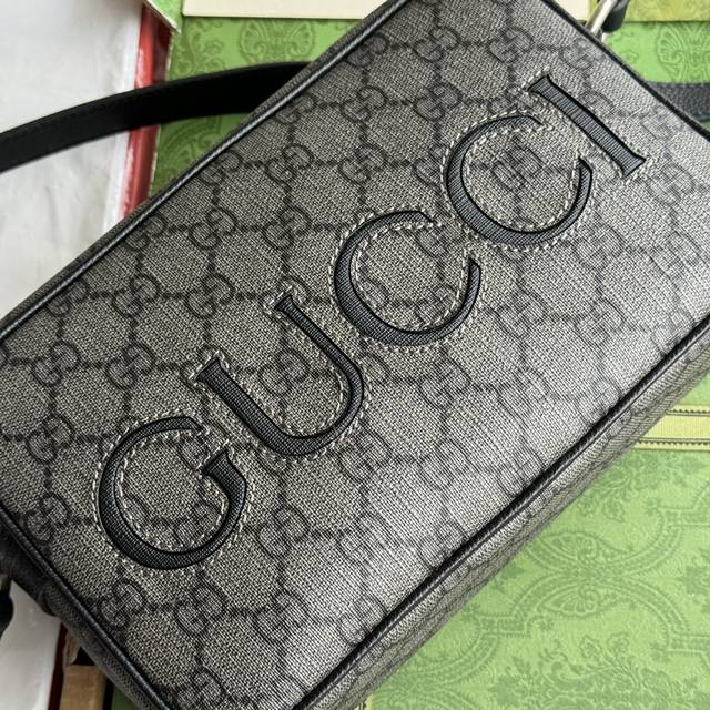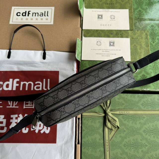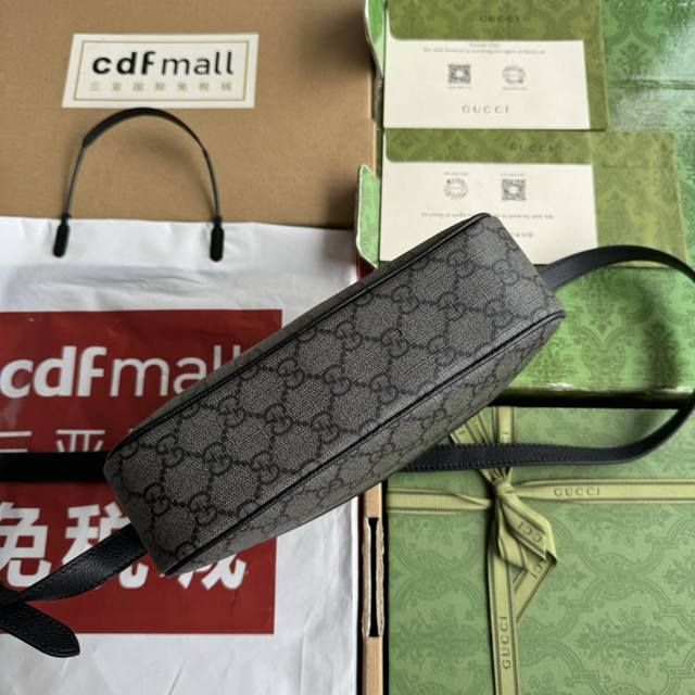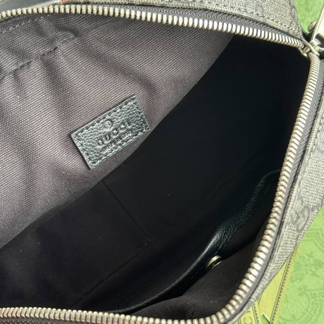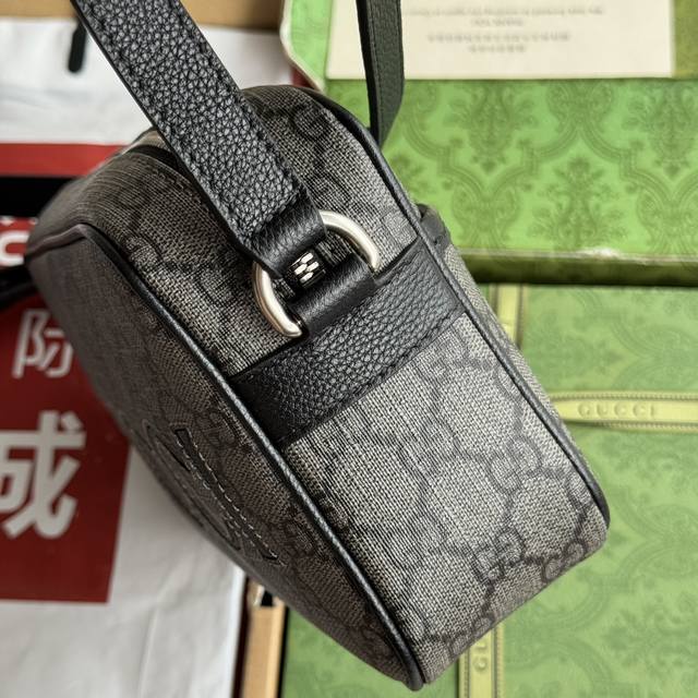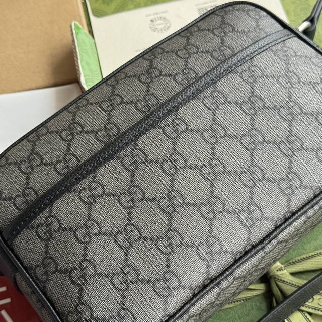 Introduction: The Spring Collection showcases new fabric combinations, showcasing a series of classic travel bags in a mix of leather and Supreme canvas, embellished with the brand's signature details. On this mini shoulder bag, the intarsia logo is expertly crafted in gray and black Gg Supreme canvas, contrasting sharply with the black base.